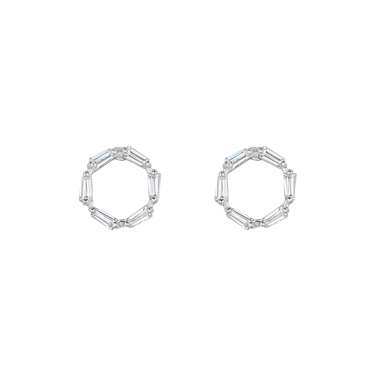These chic stud earrings are made from precious 9ct white gold, and feature eternal circles embellished with cubic zirconia baguettes. Perfect for bringing a touch of shine and sparkle to your everyday look.