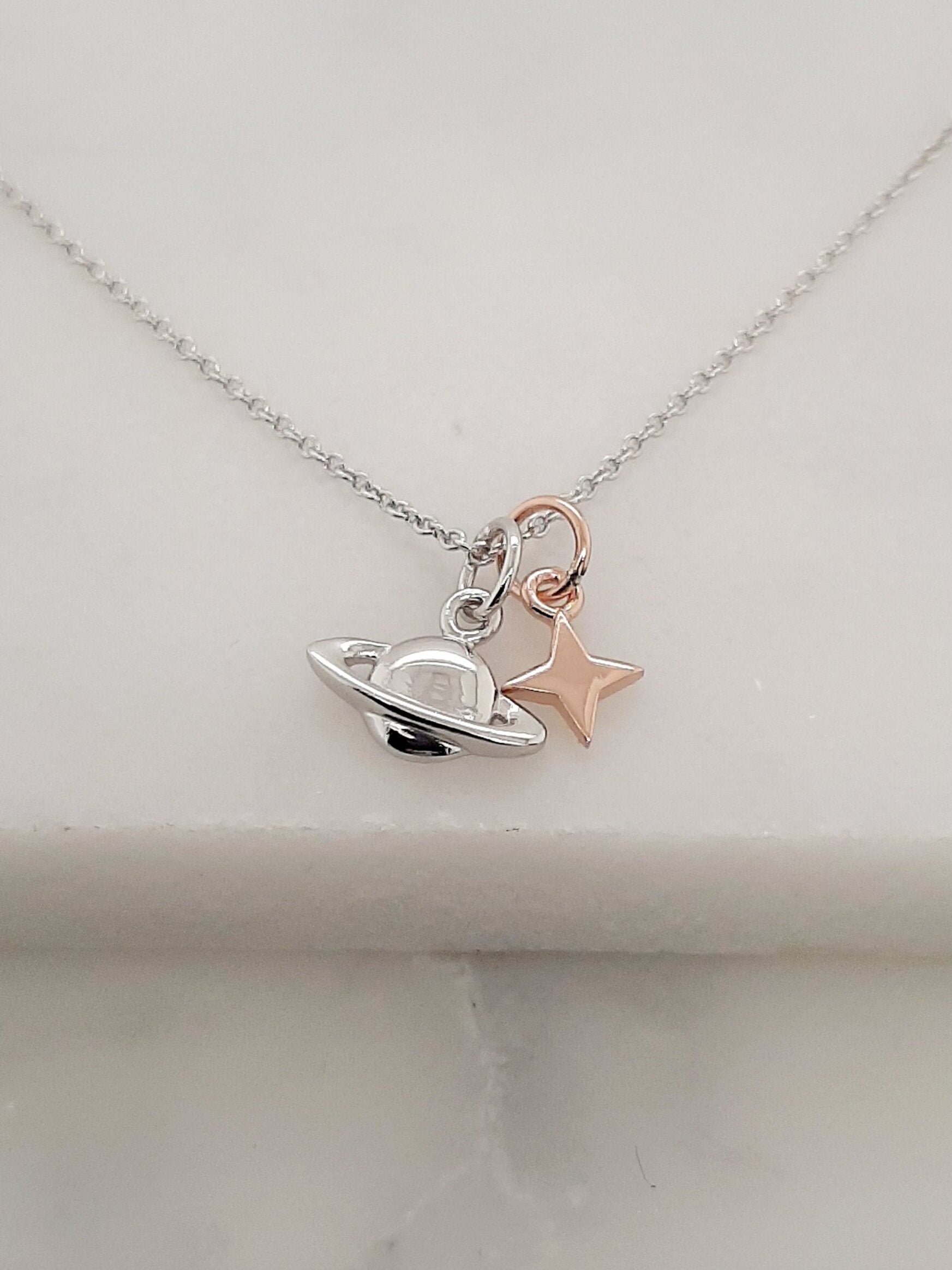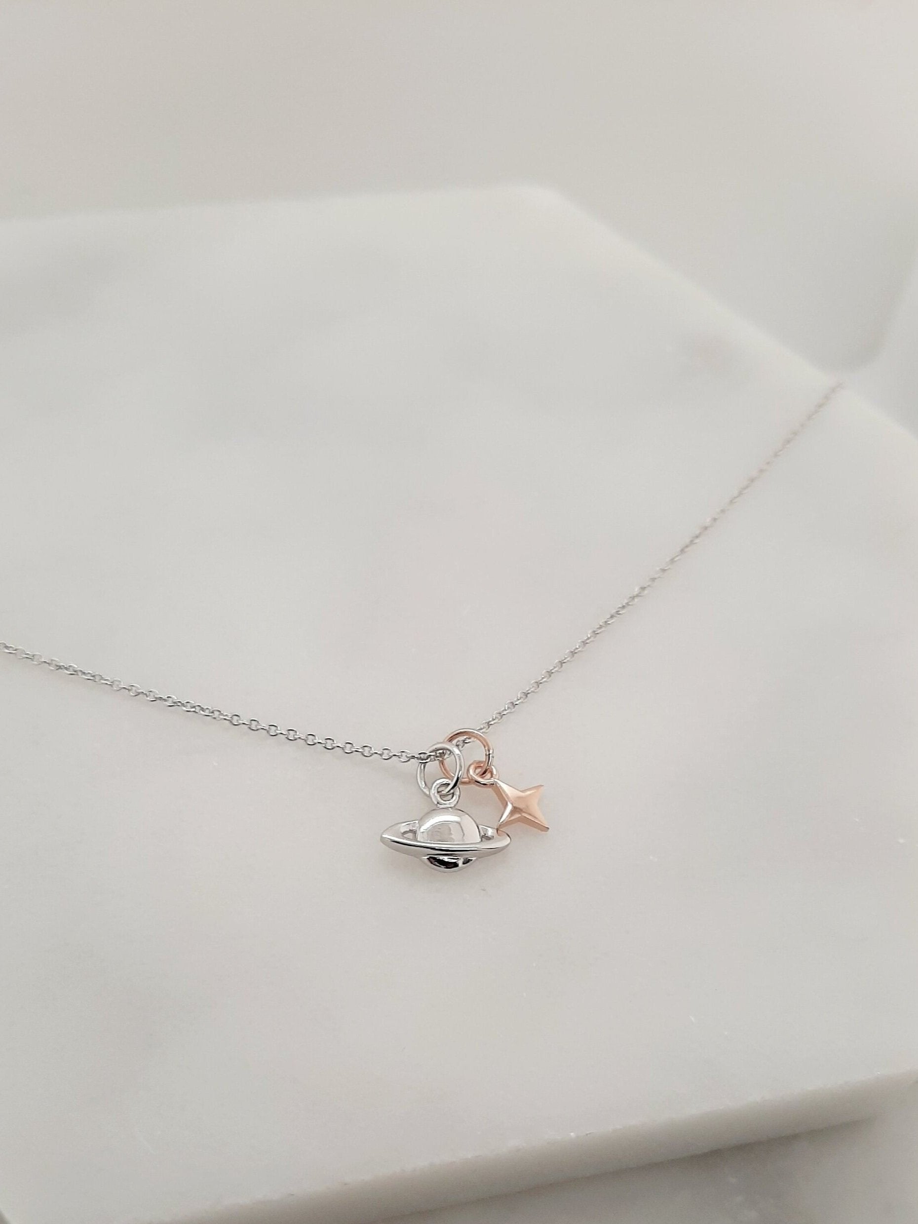 - Rose gold plated star on sterling silver with a sterling silver chain.