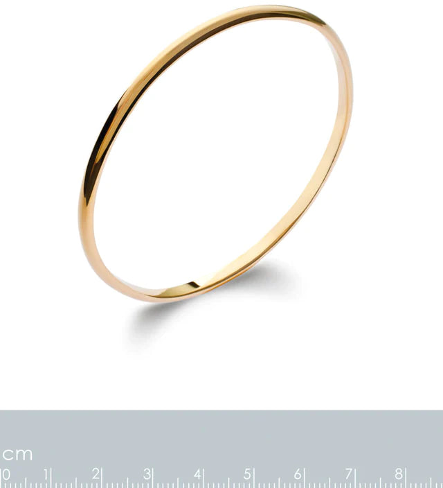 Solid D-shape slave bangle. 18ct gold plated on brass. Available in 2 sizes: medium or large.