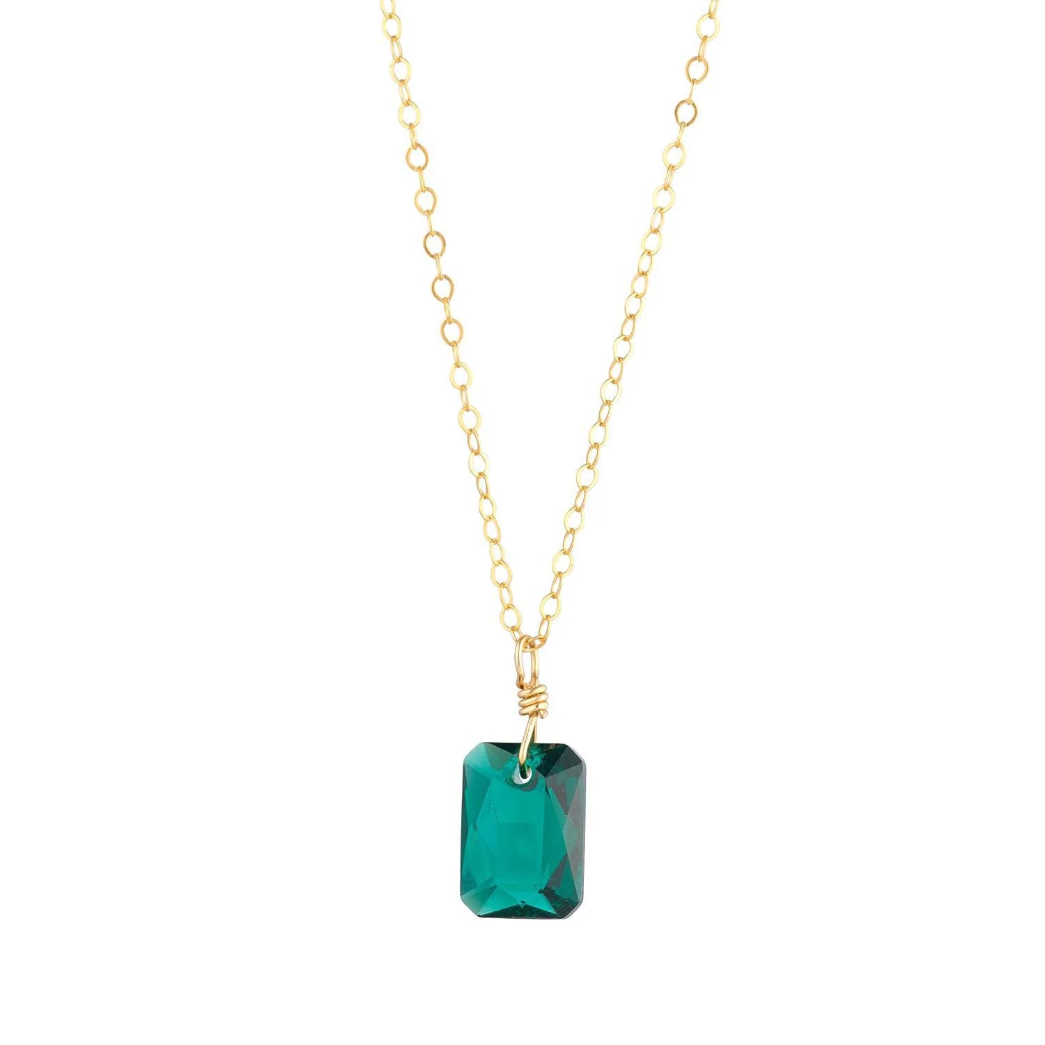 14ct gold filled chain with an Emerald Green Crystal and Emerald cut.