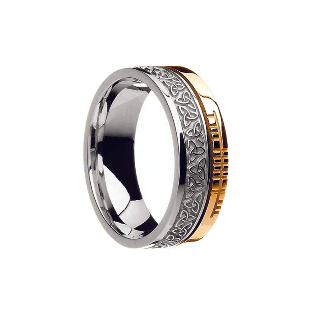 Sterling Silver and 10ct unisex band inscribed with the word FAITH in Ogham script and beautifully detailed with a continuous trinity knot band.