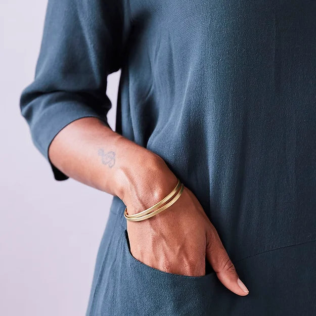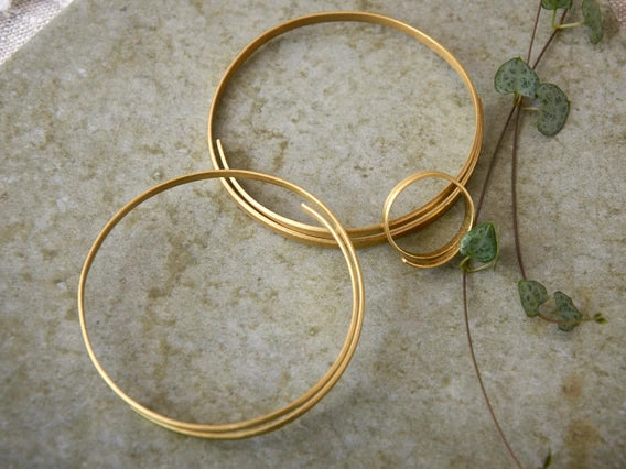 Brass strips are cut, polished and passed through a rolling mill to create beautiful textures which are then carefully formed in to the final pieces.