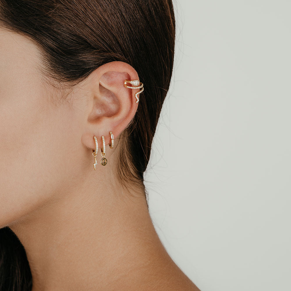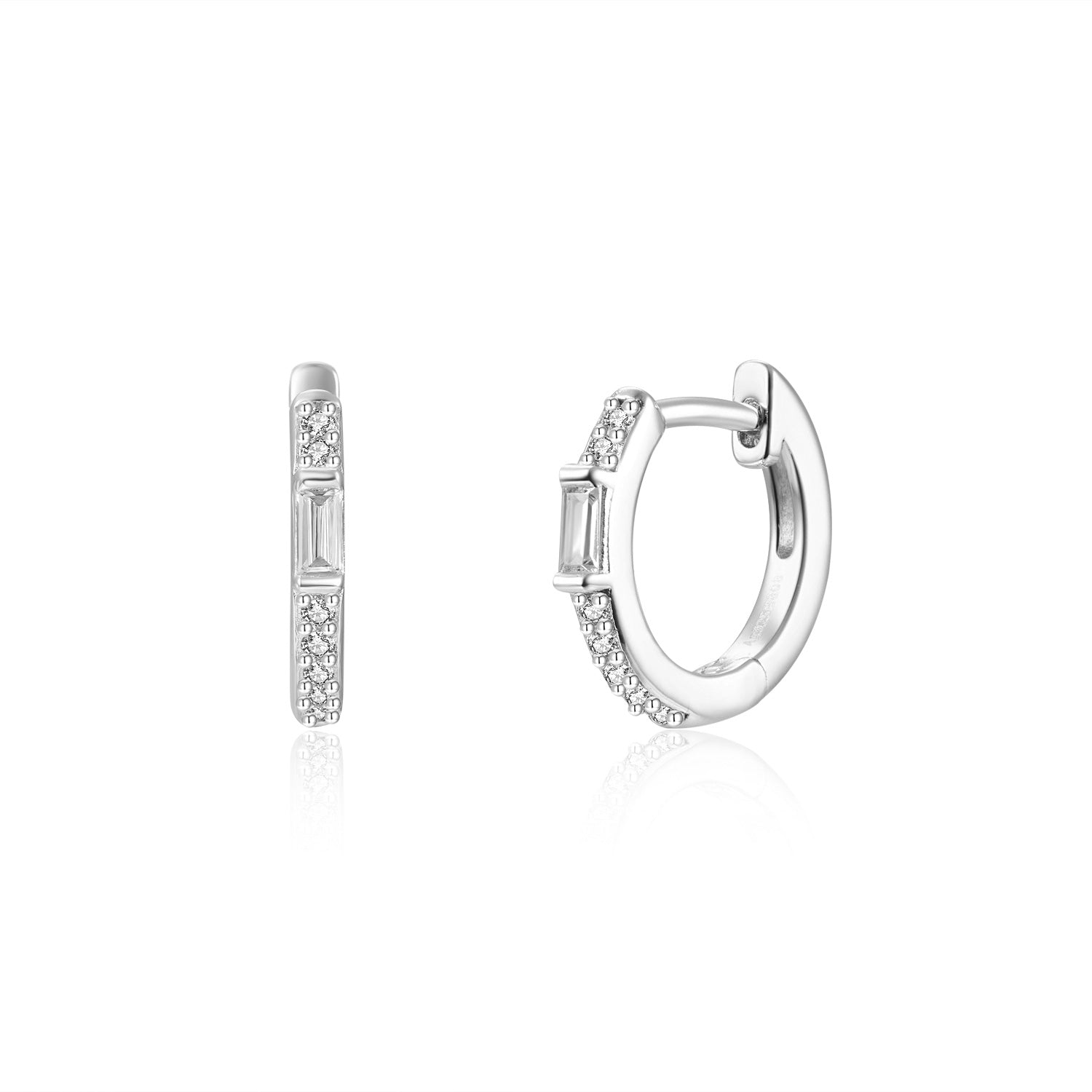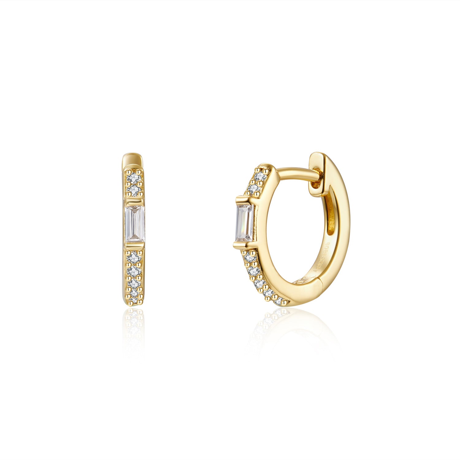 Stunning cubic zirconia huggie hoops, with a feature baguette zirconia in the centre, these will be a great addition to any curated ear