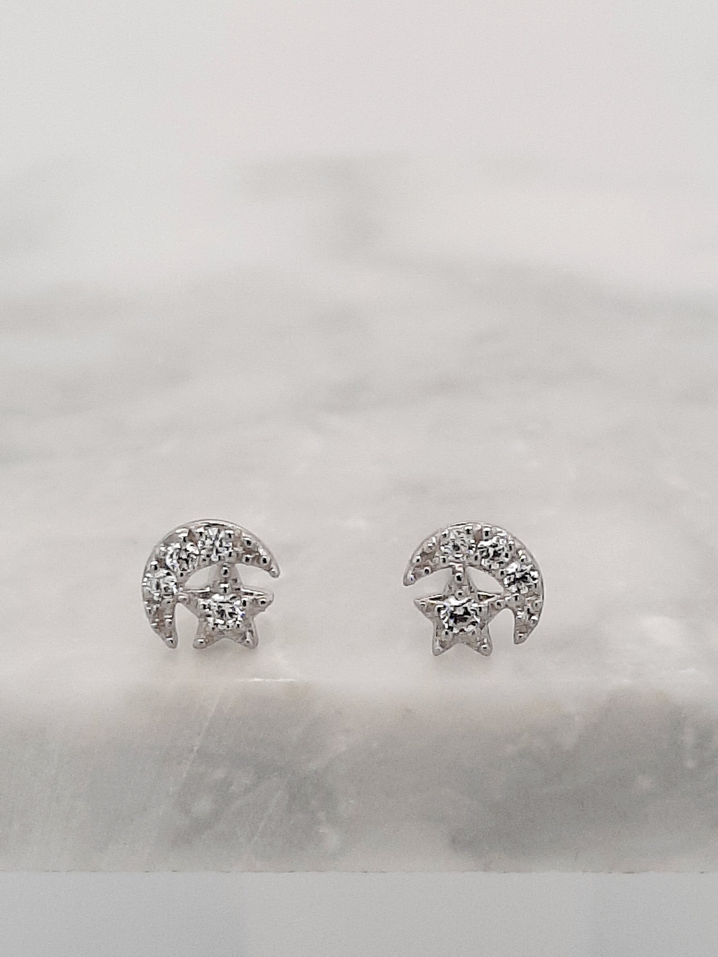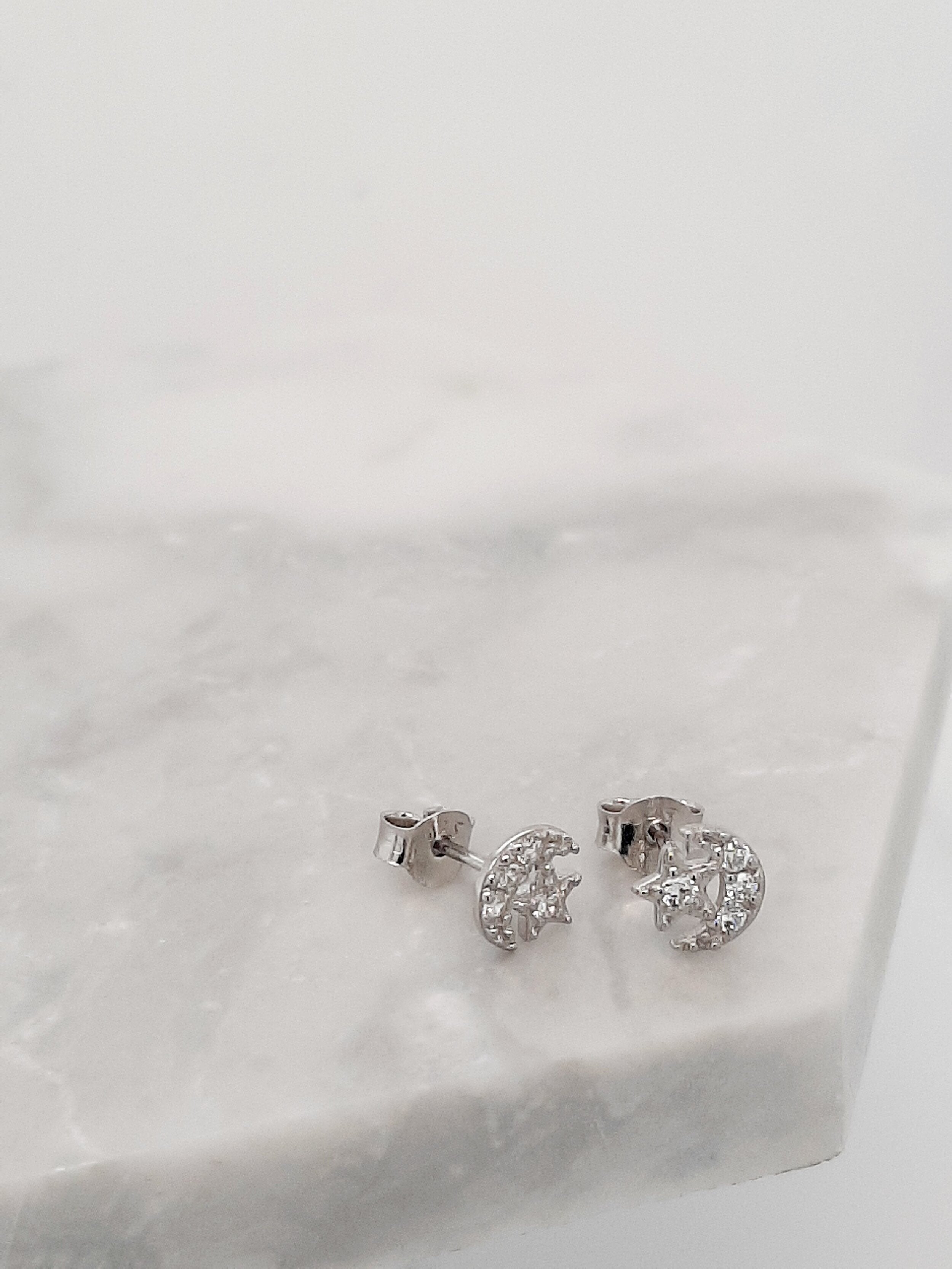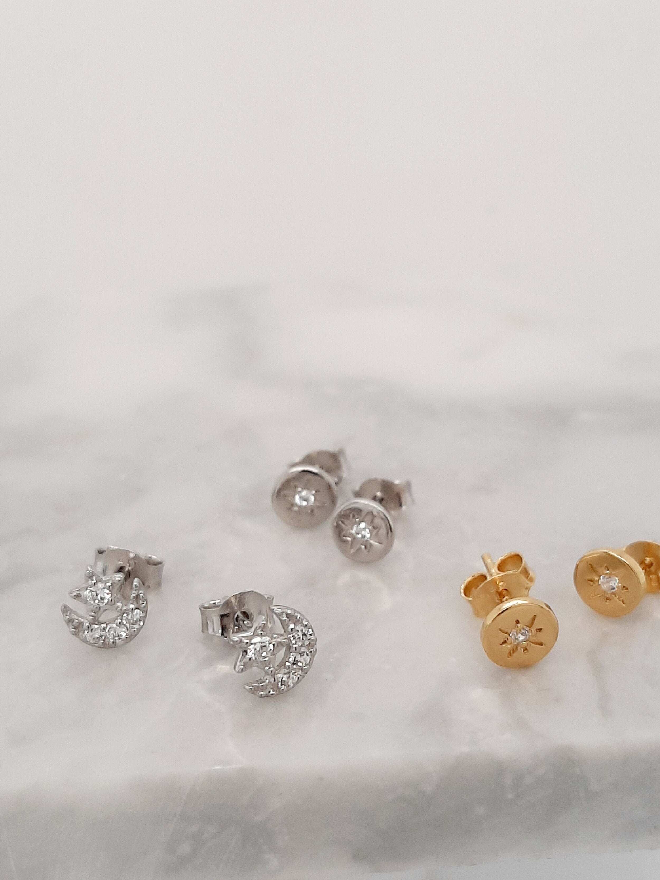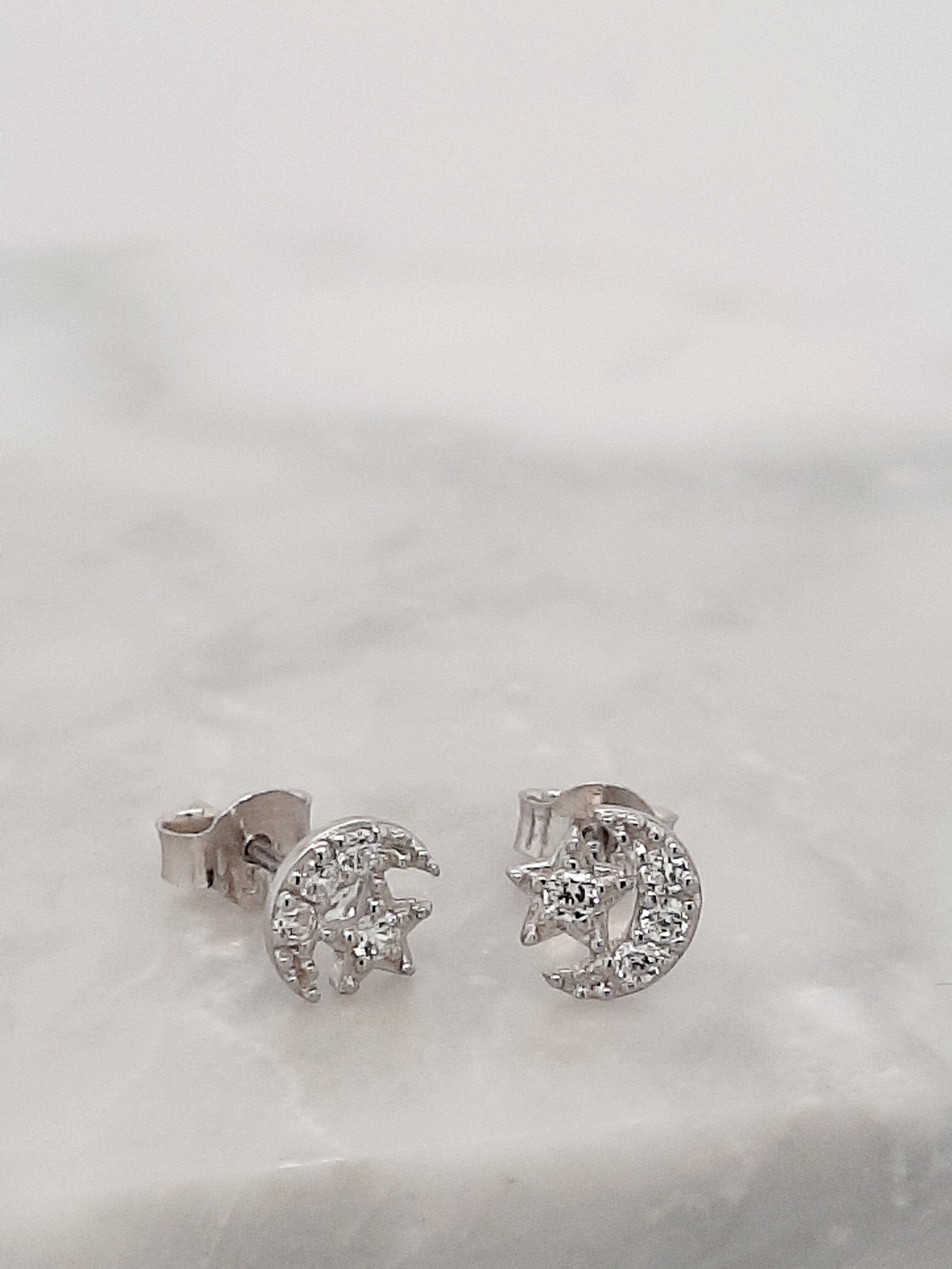 Sweet little moon and star studs. Wear on their own or small enough to wear higher up with different styles.