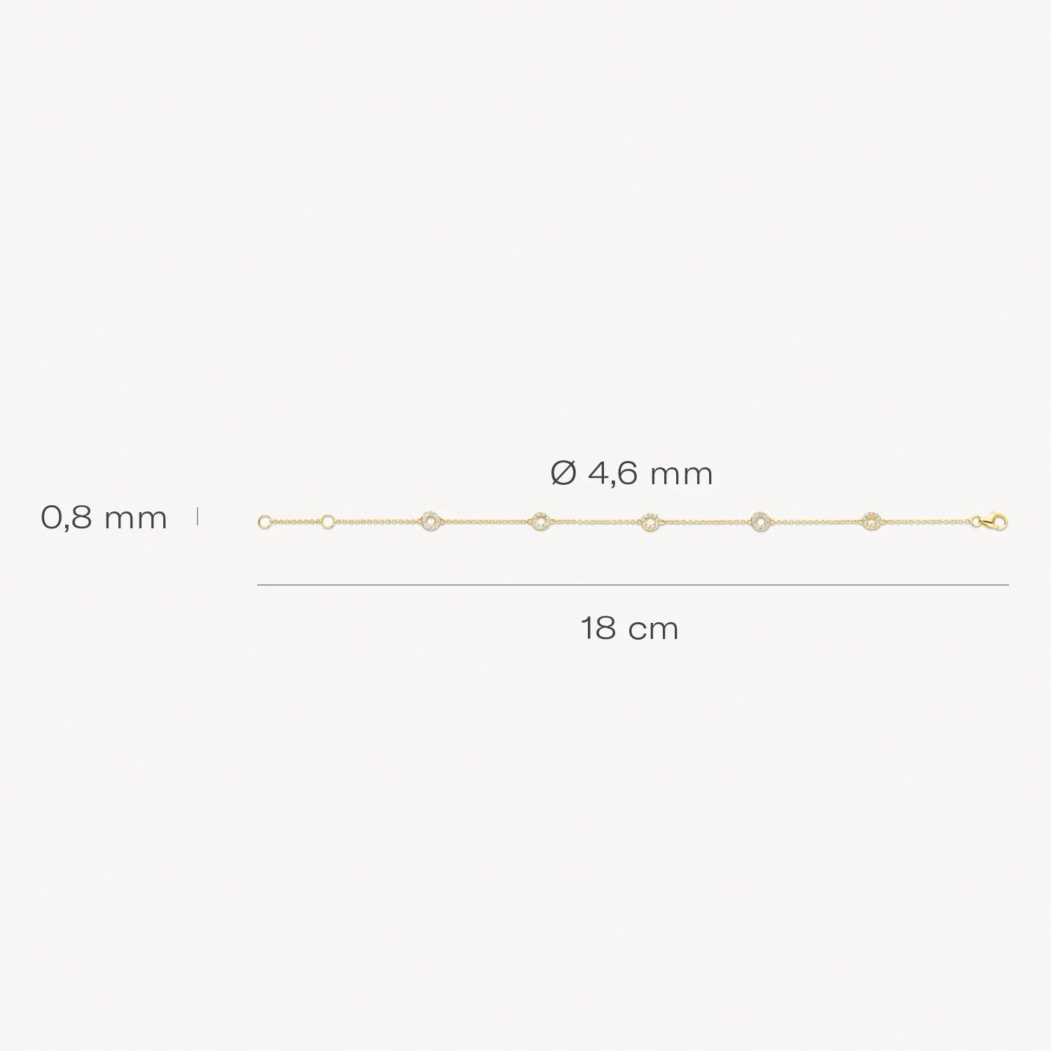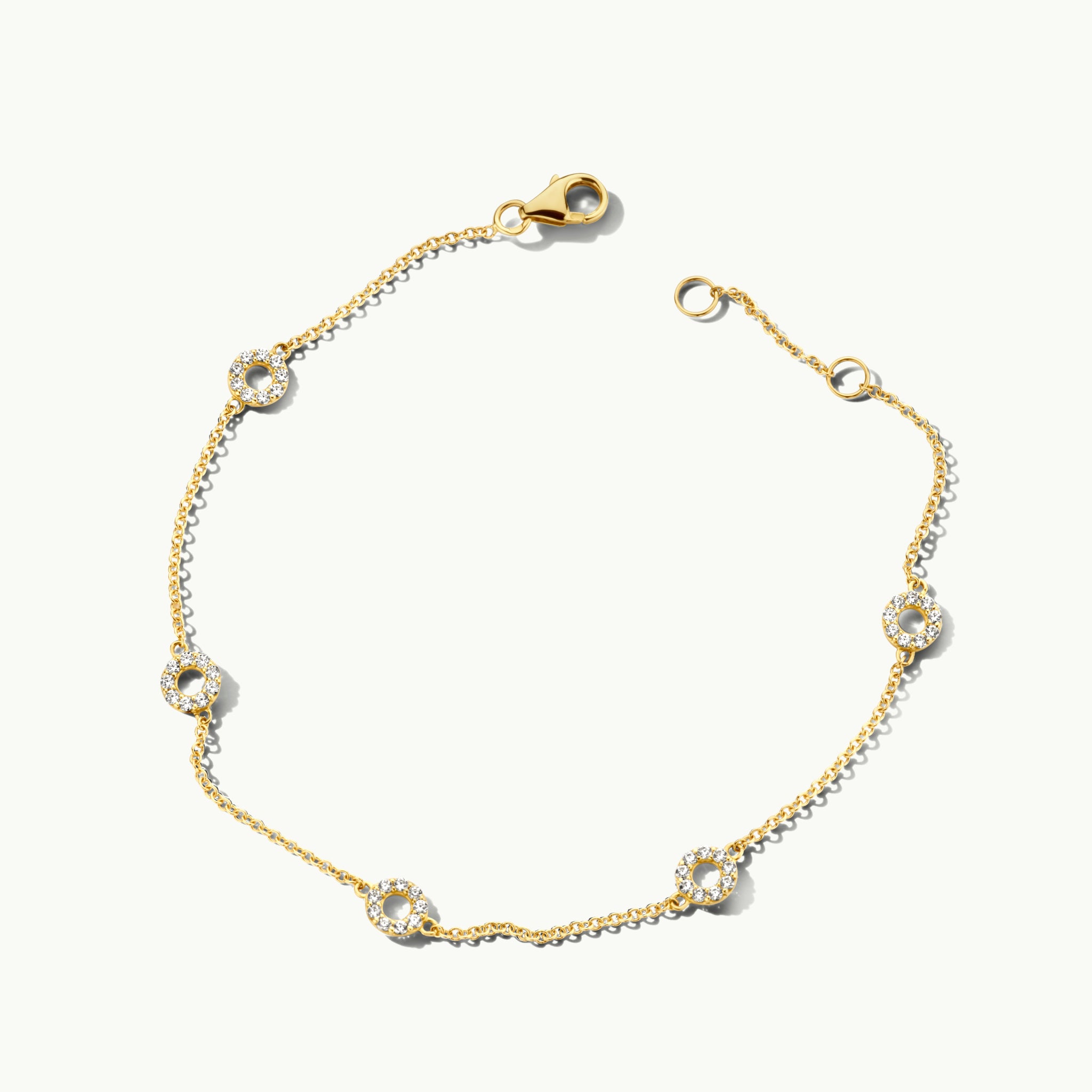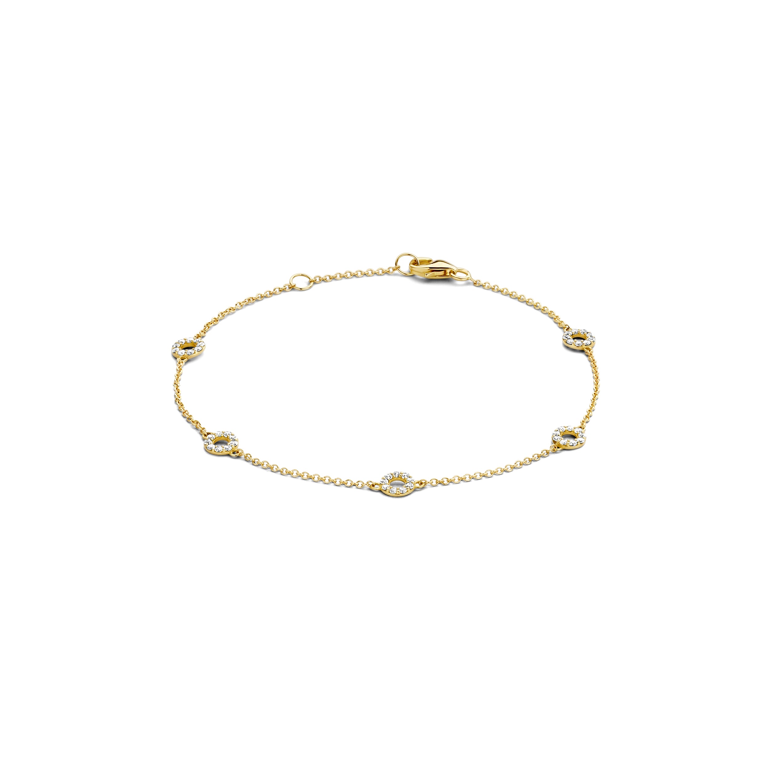 This stylish bracelet made of 14k yellow gold has a playful design consisting of links alternating with circles set with zirconia.
