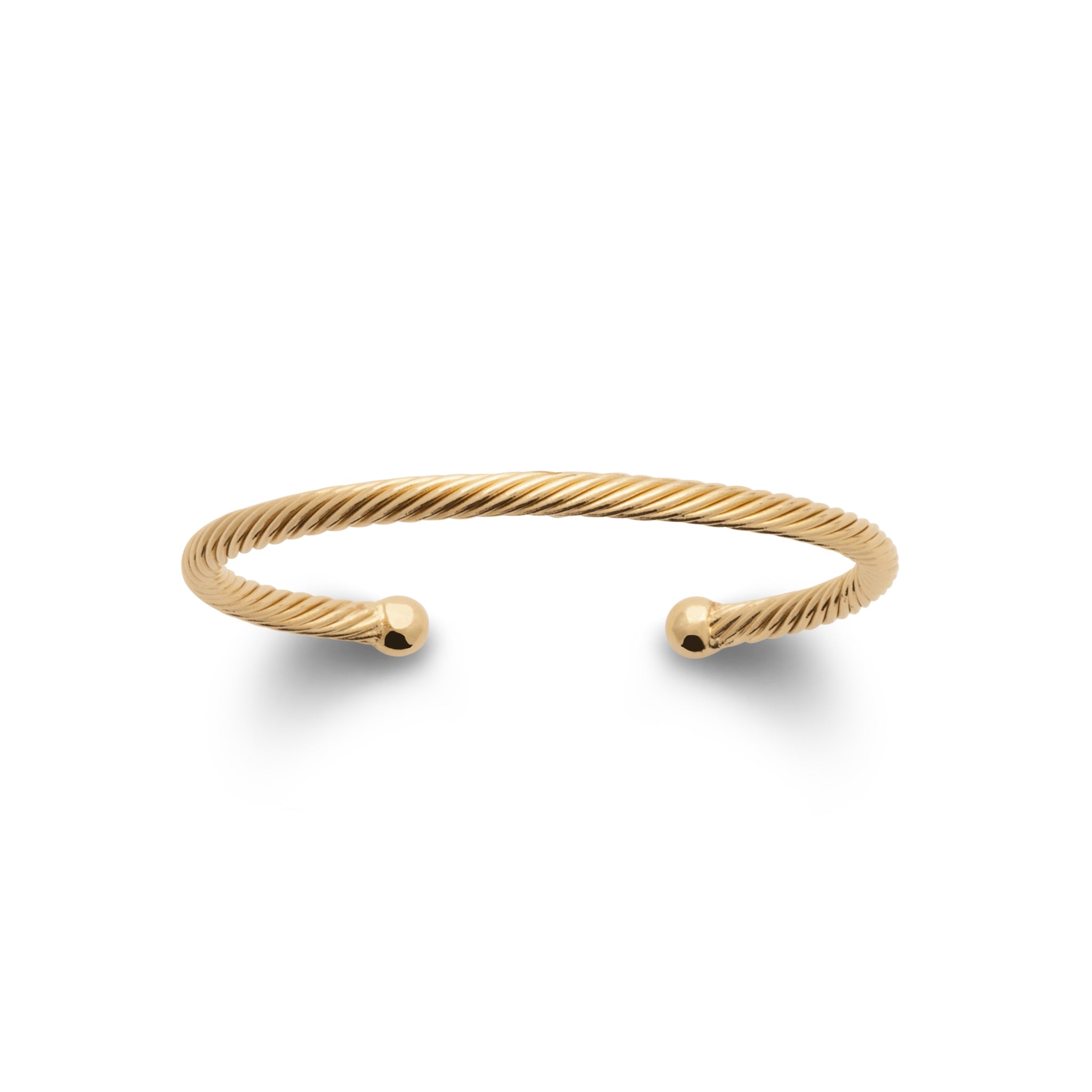Minimalist torc style bangle from Burren Jewellery. Plated with 18ct gold and detailed with a pretty twist pattern.