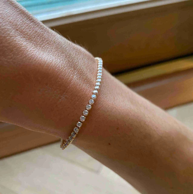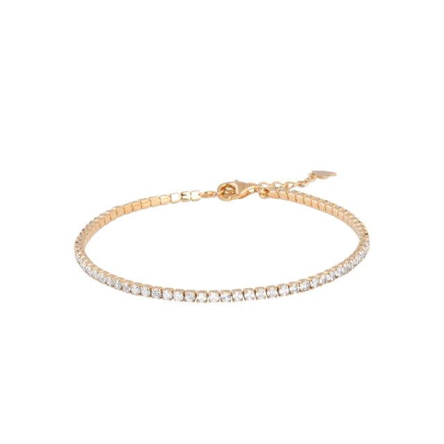 Simple yet stylish, this 18ct gold plated tennis style bracelet is a great day or evening look. Features radiant Cubic Zirconia crystals.