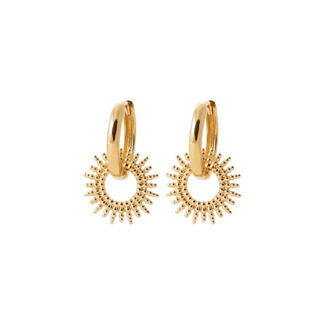 Beautiful sunburst earrings, on a huggie hoop. The sun charm can be removed leaving you with the perfect plain huggie hoops.
