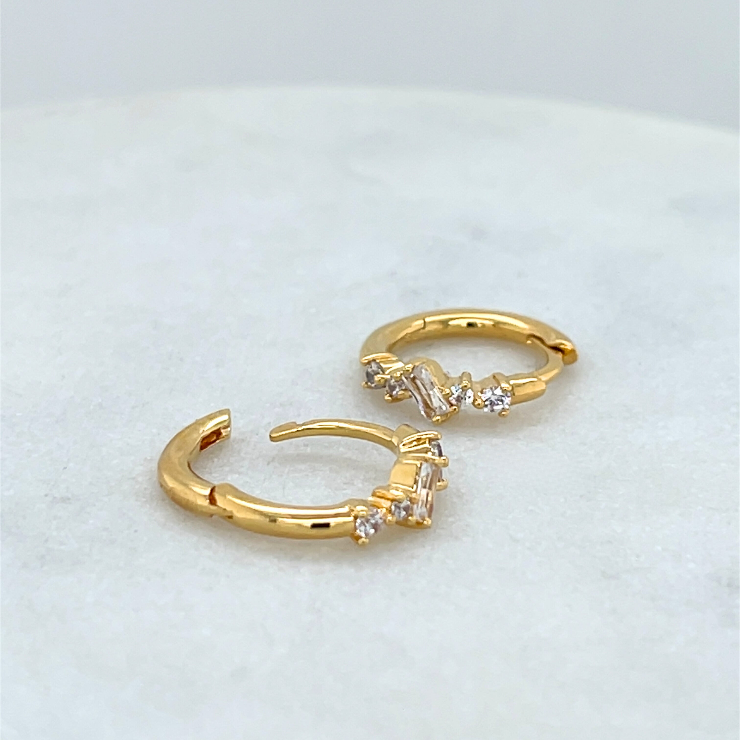 To wear simply open the huggie hoop earrings and slip the narrow part of the earring through your piercing then click to close. Working beautifully with upper ear or mid ear piercings, please be aware that these huggie hoops are small and dainty with a close fit to the ear, which may not fit larger lobes or if the piercing is set higher on the lobe.