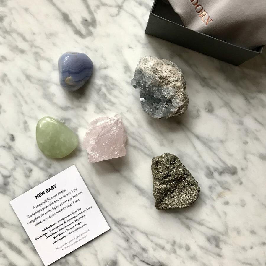 A unique gift for a new Mother. This crystal collection carries with it the energy from the natural earth, display around your bedroom where you and your new baby sleep and rest.