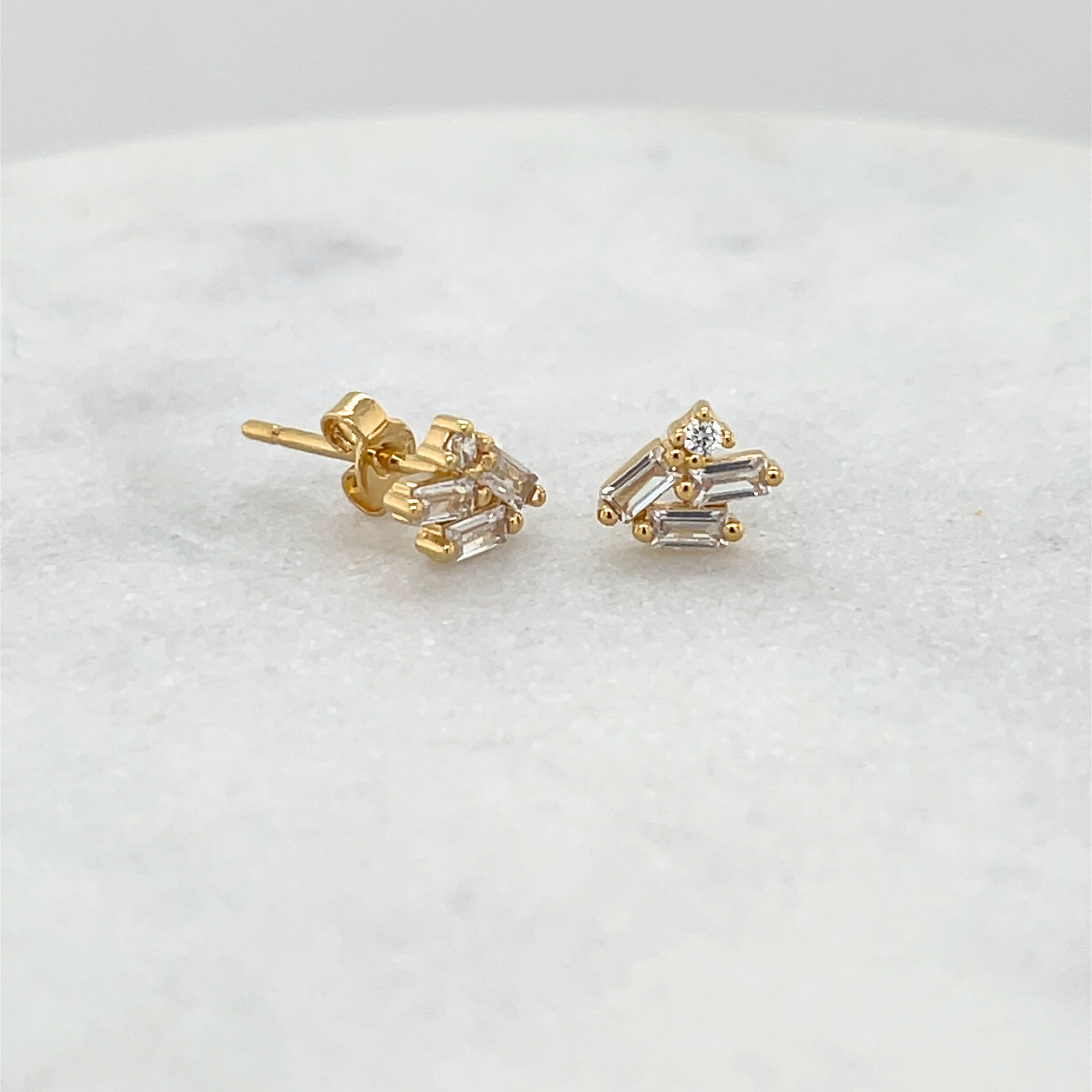 Stunning 3 micron gold-plated studs that shine like ice crystals. A lovely addition to a curated earring collection. Perfect worn alone or with other mini studs or hoops from our collection.