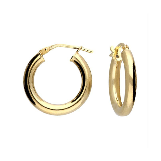 Tube style creole hoops, available in sterling silver or yellow gold plated.