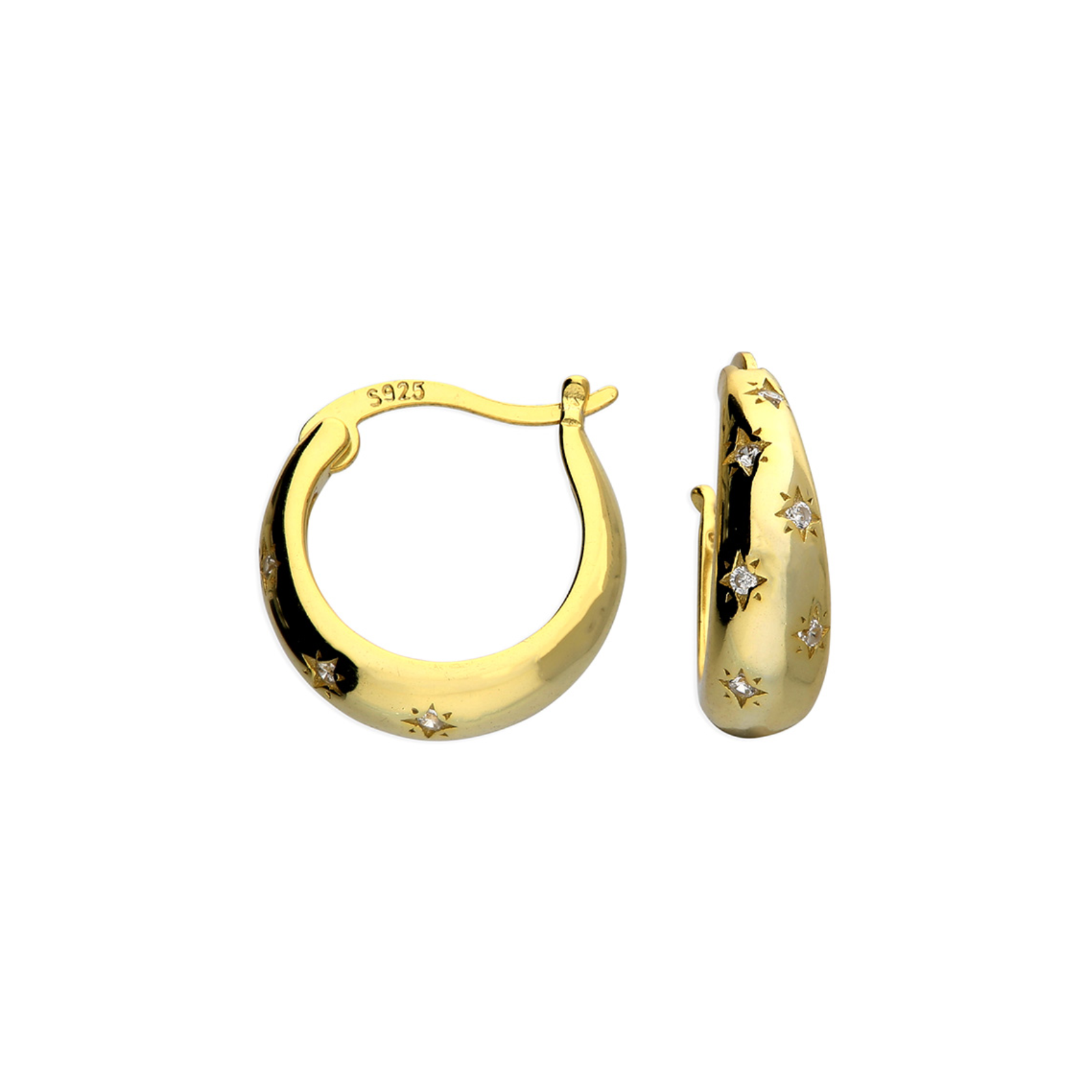 Yellow gold plated on sterling silver cubic zirconia star creole hoop earrings