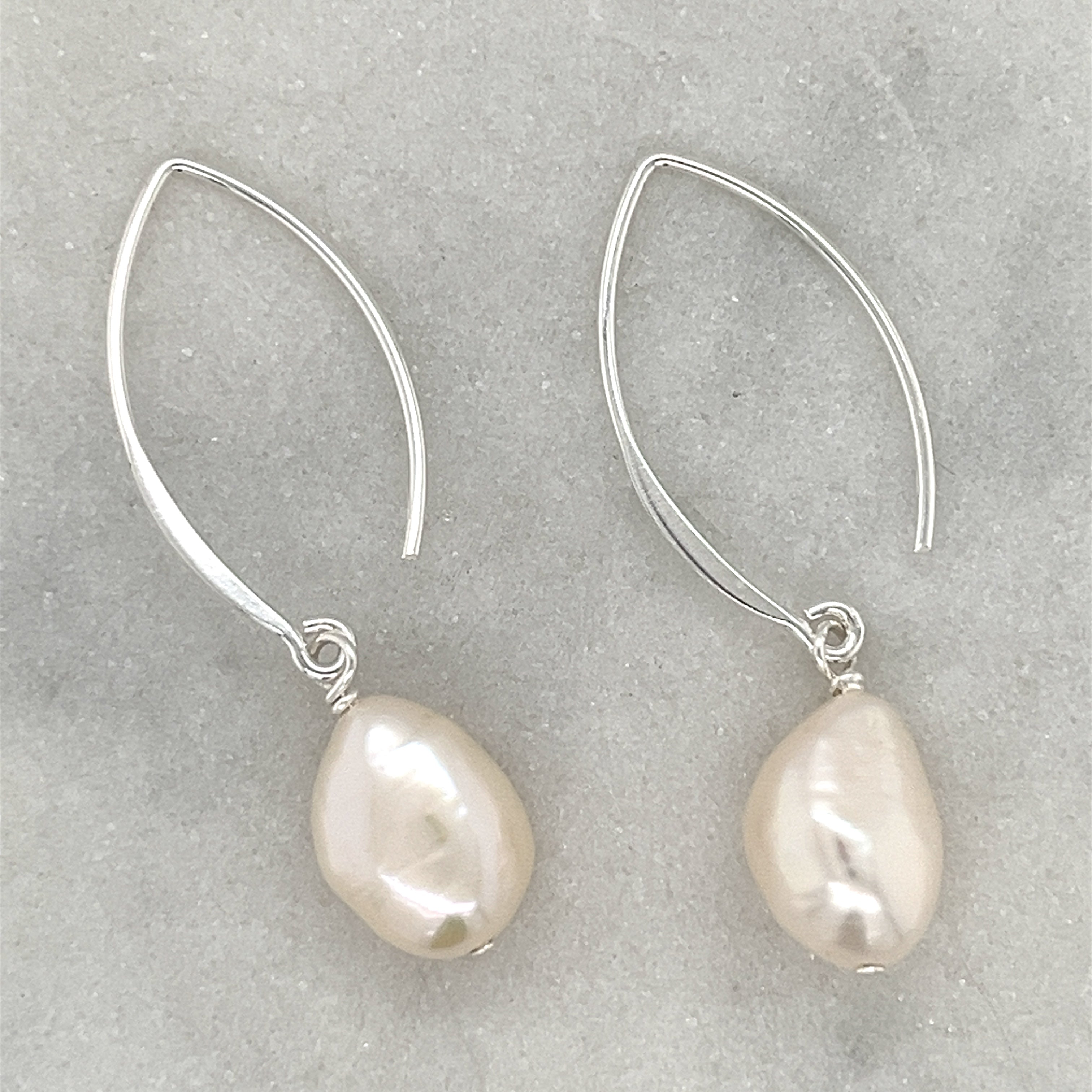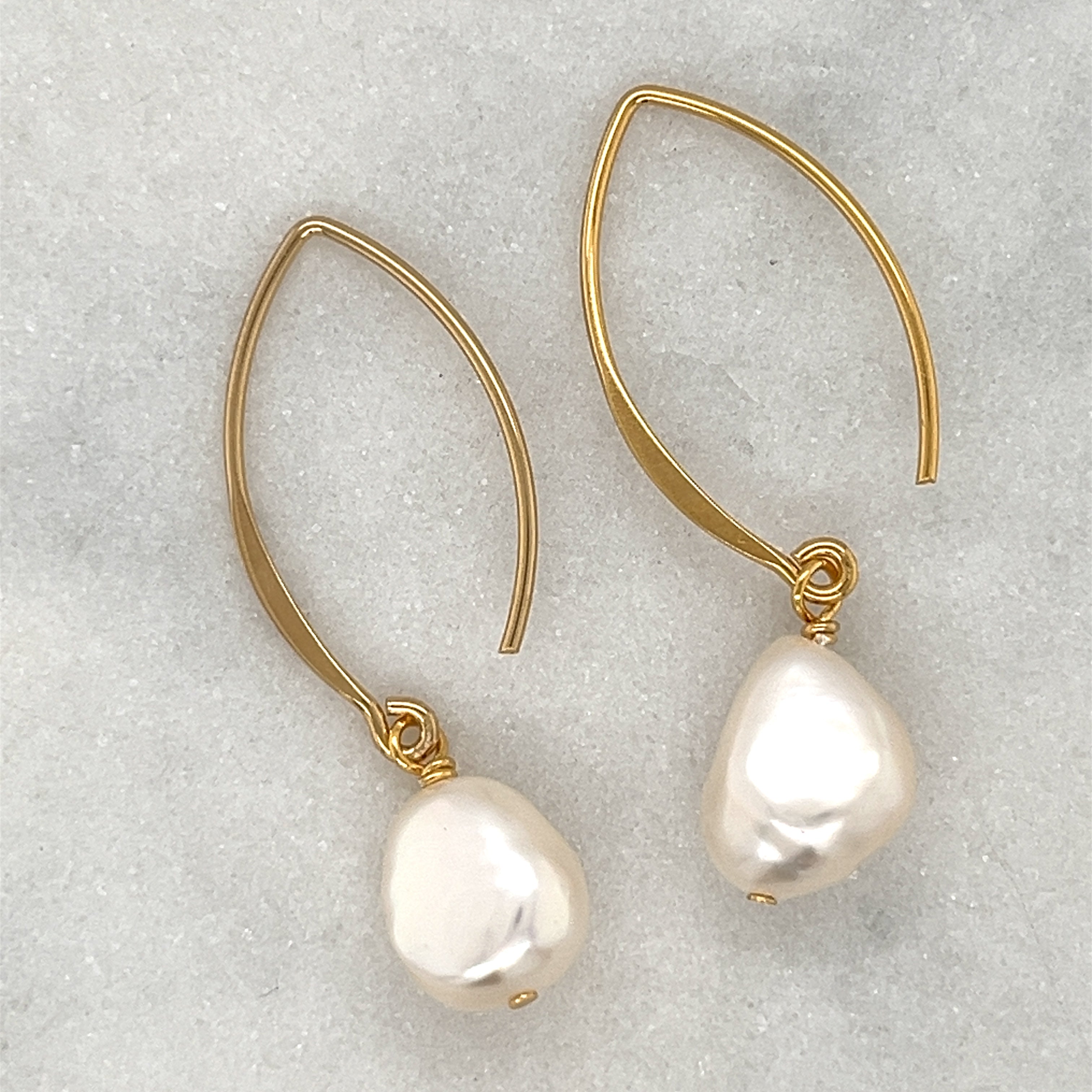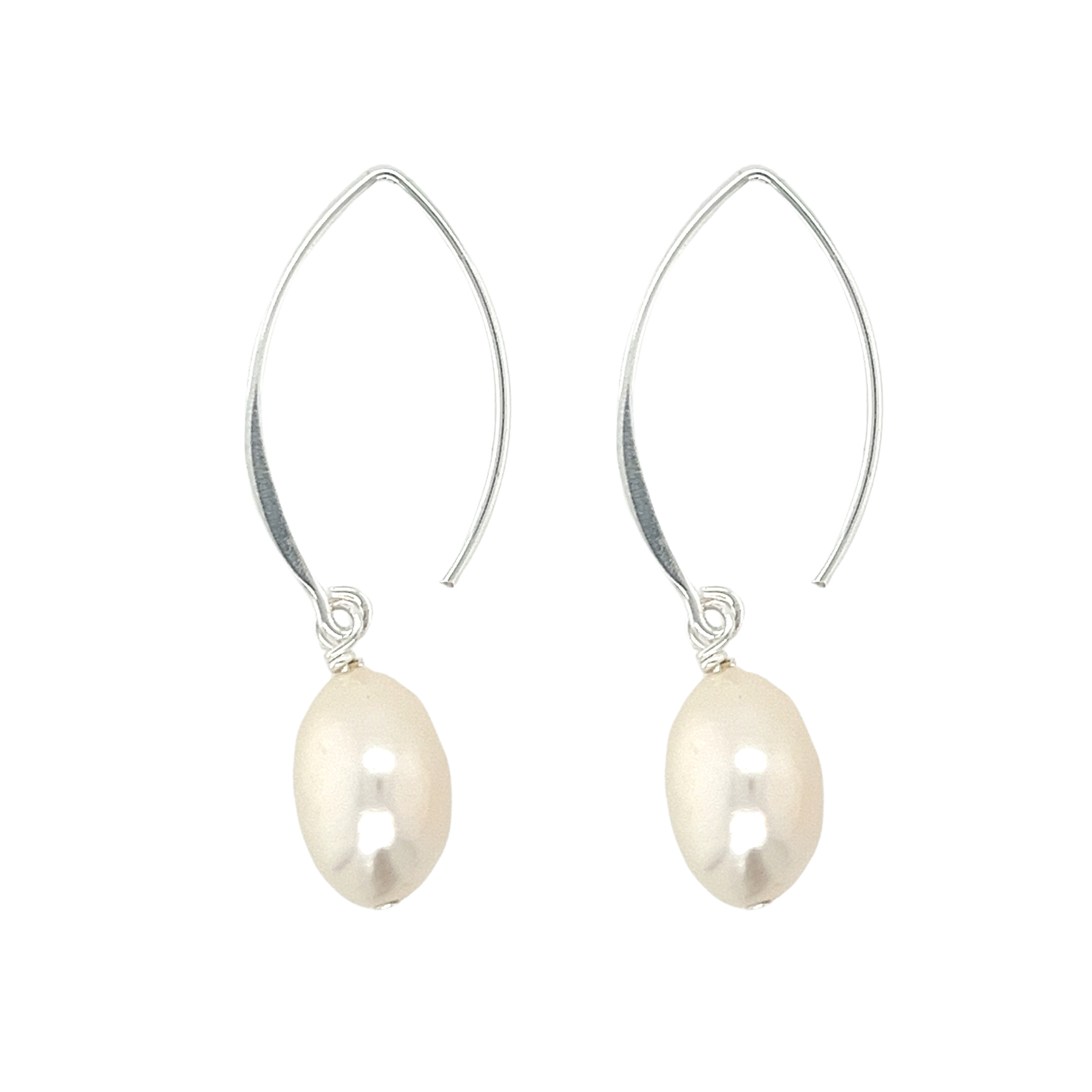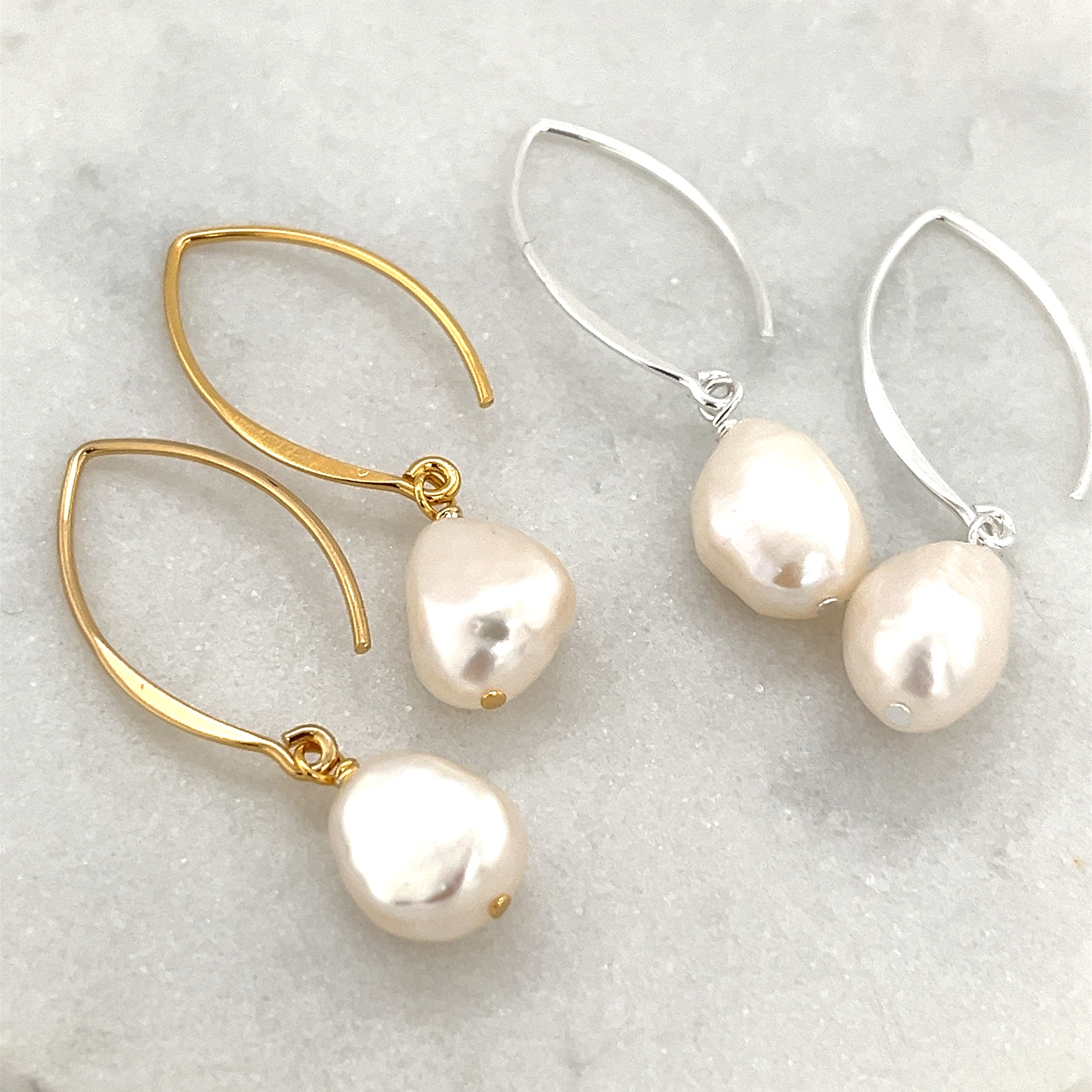 A modern take on classic pearl! These Lumi Pearl Earrings in sterling silver, gold plated and freshwater pearl are designed by us for our own collection. The elegant shape makes them easy to wear and match with other pearl pieces.