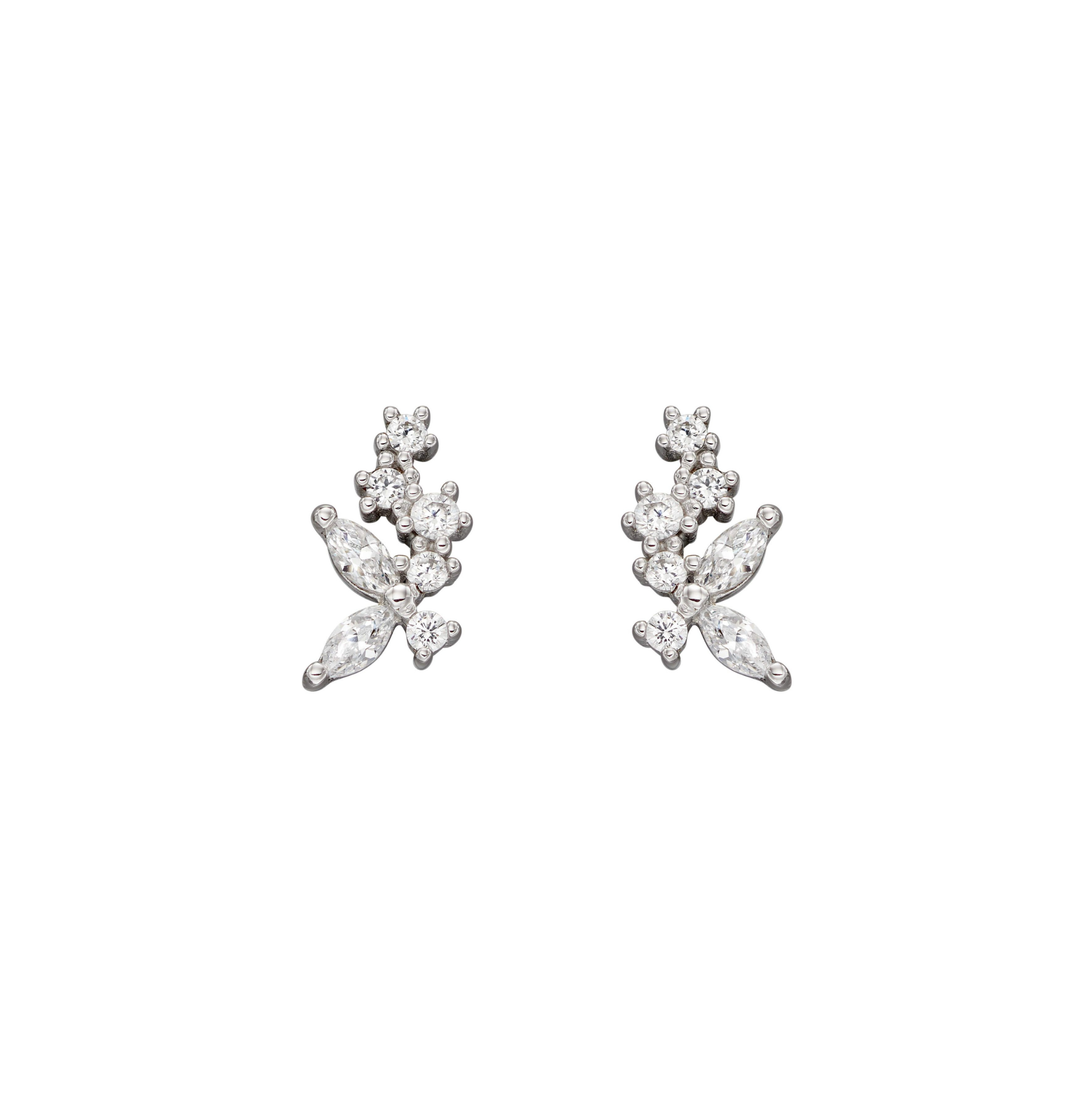 Perfect for stacking on the ear with other stud earrings. Crafted in sterling silver with a rhodium plating, and featuring cubic zirconia stones, these earrings are wonderful for adding a little sparkle to your outfit!