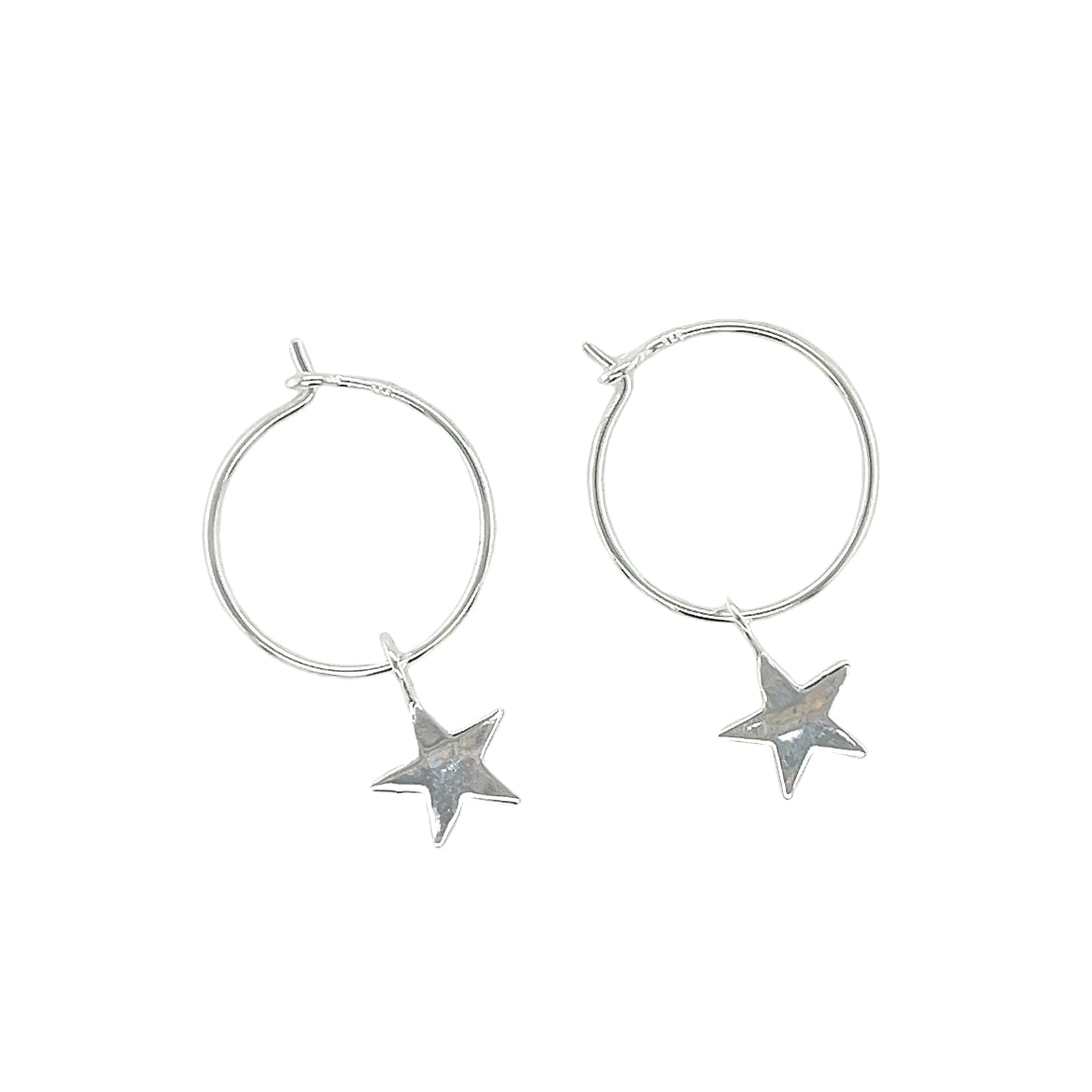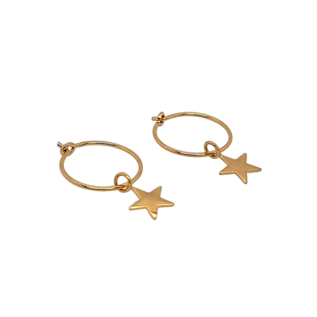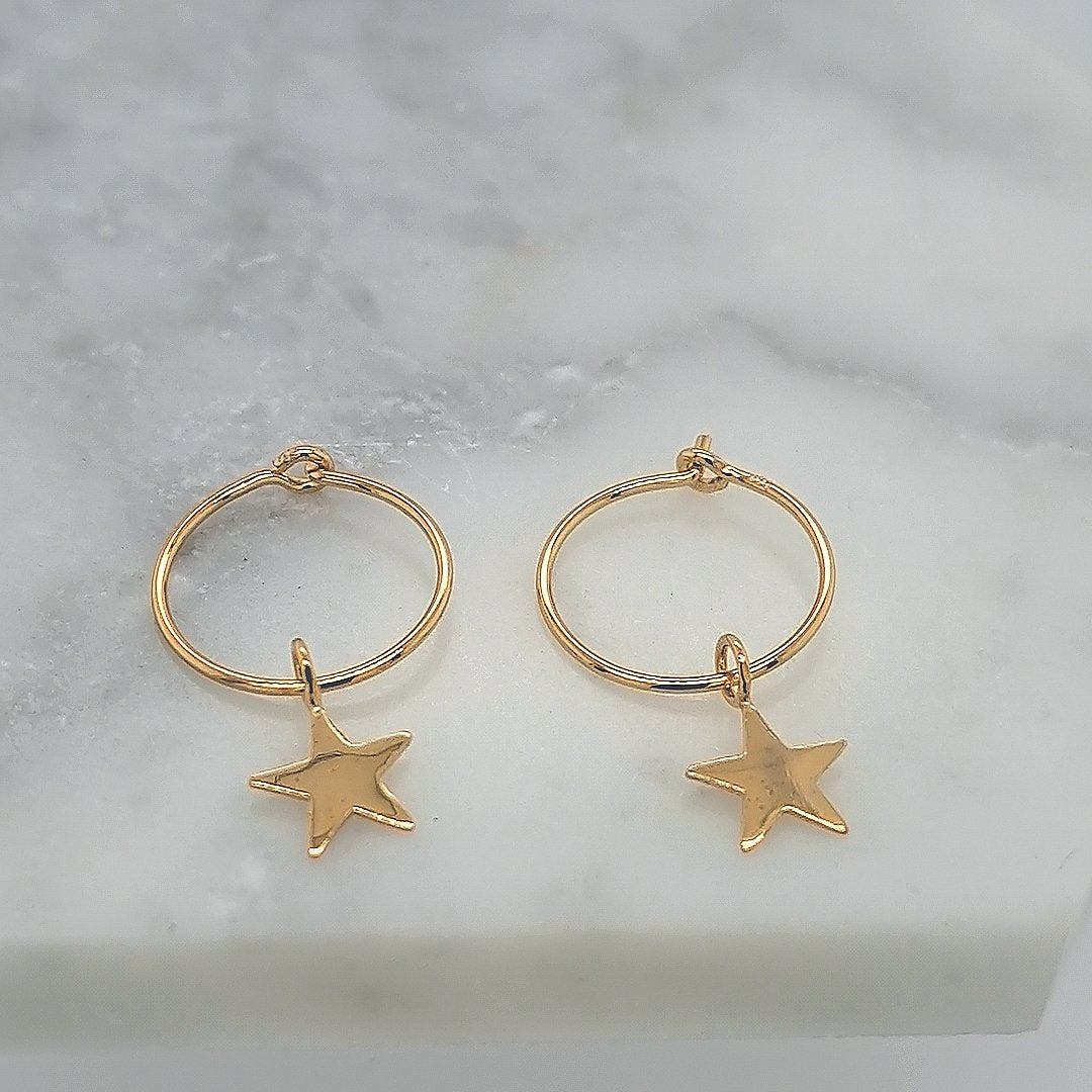 Minimalist sterling silver and yellow gold plated hoops with a star charm detail.
