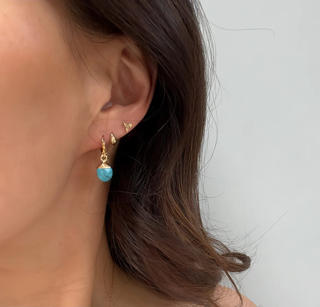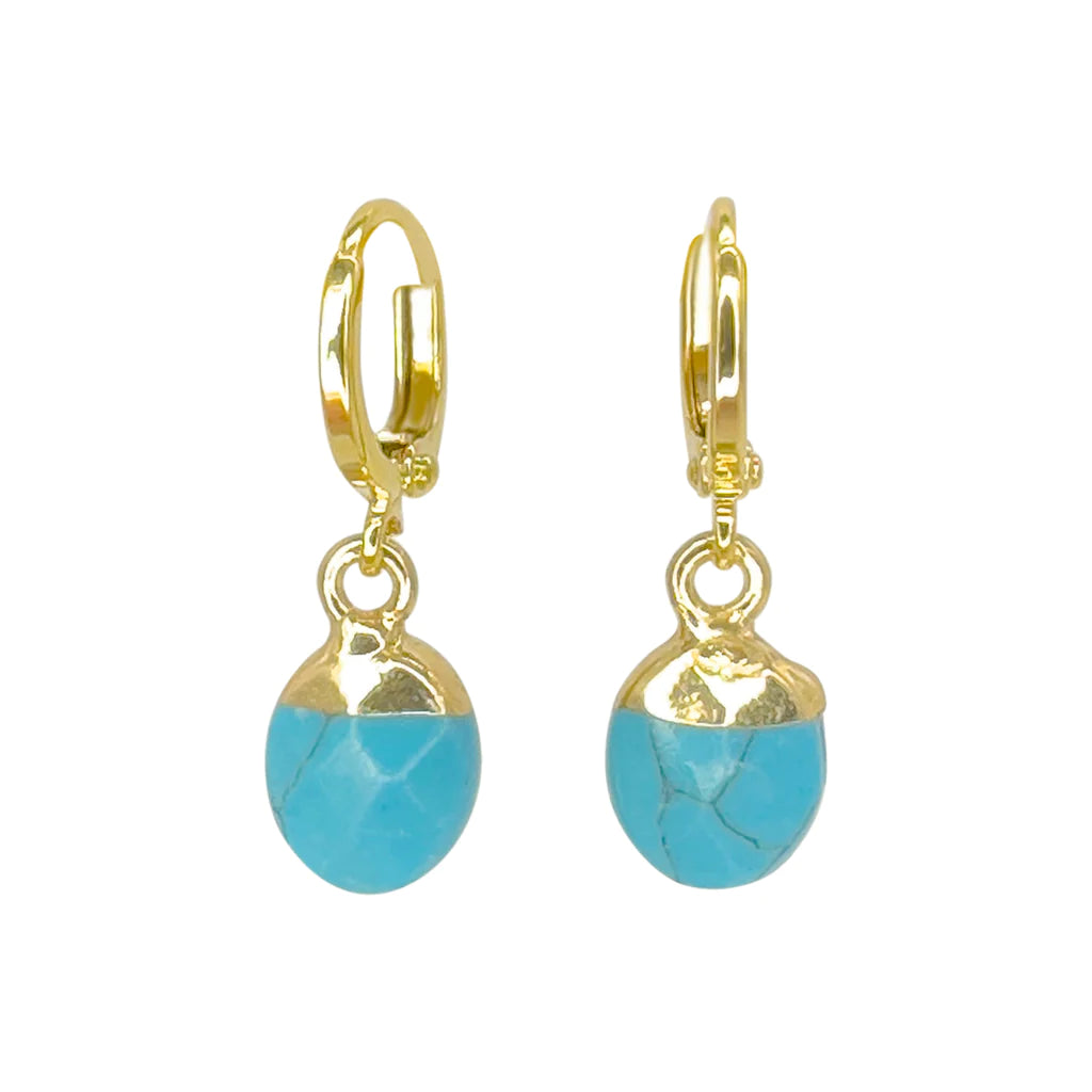 Turquoise earrings are handcrafted using faceted pressed turquoise stones. Classic hook style closure.