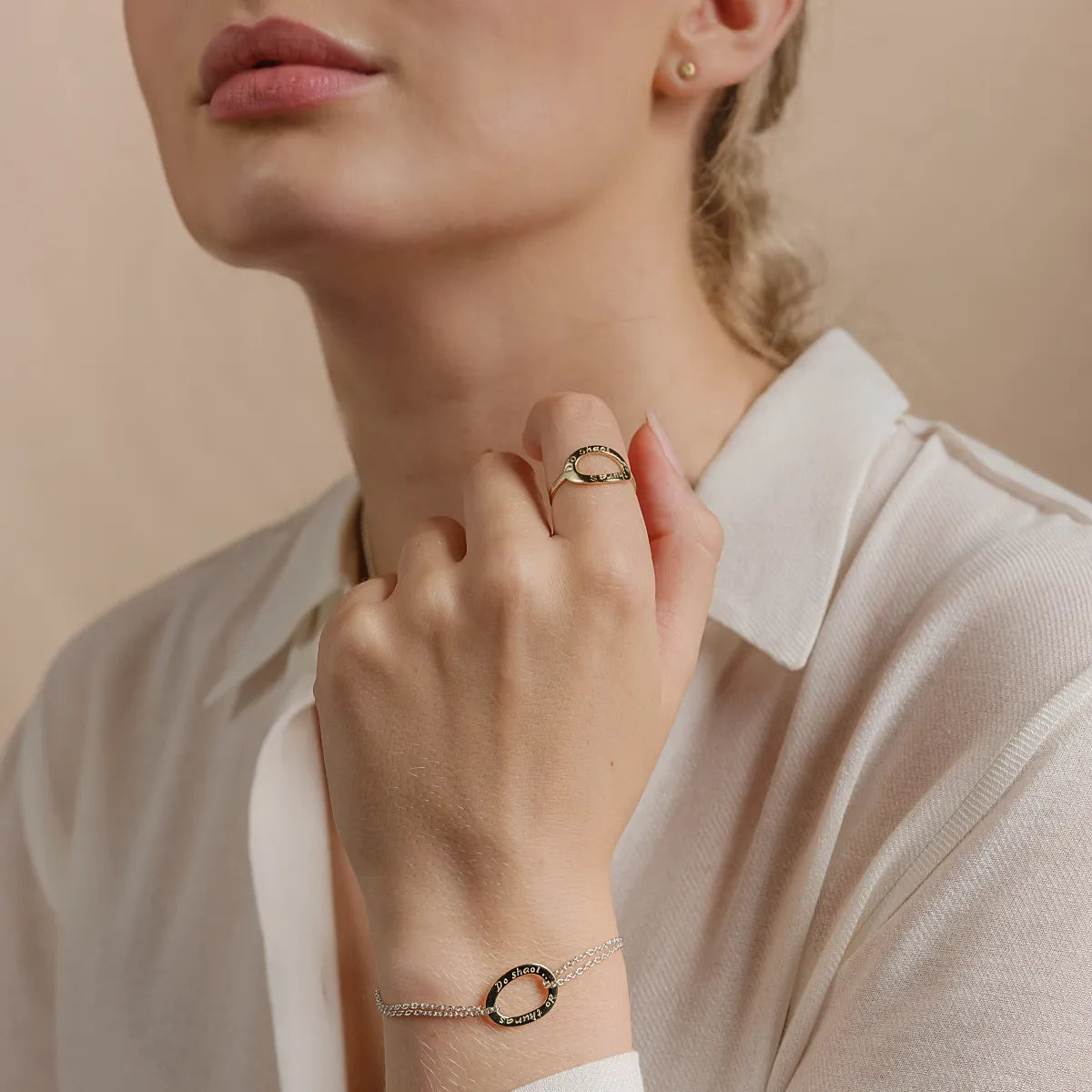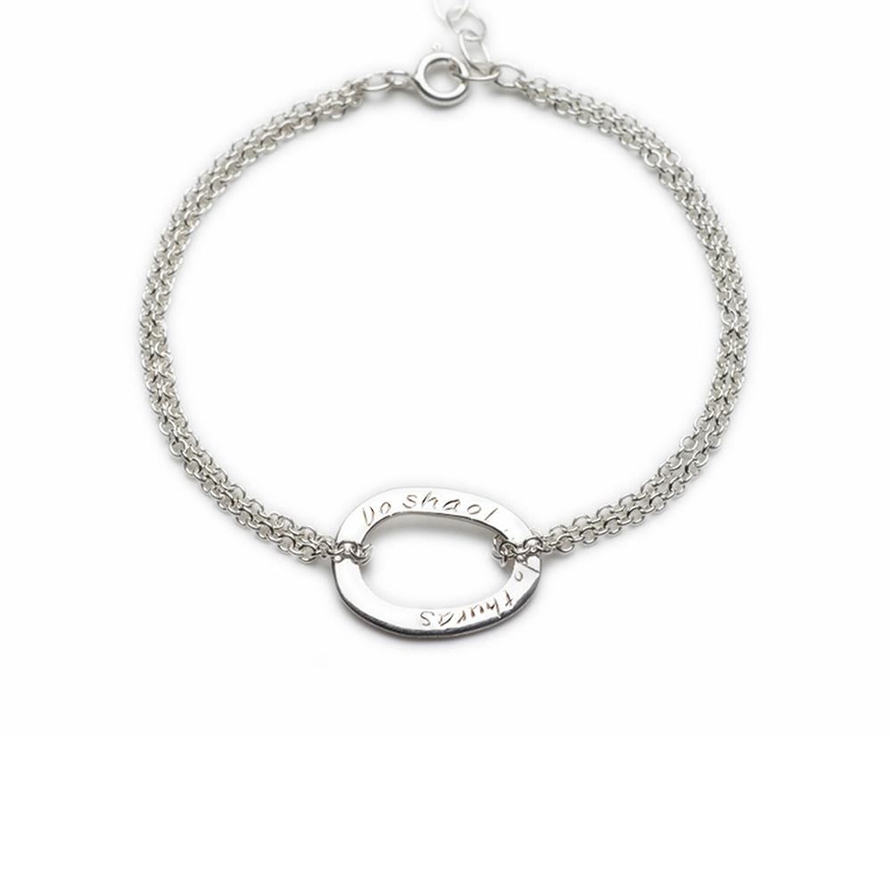 We all need comfort and strength as we follow our path. Whichever direction we choose there are sometimes hidden bumps along the way. The message this bracelet carries is one of reassurance and resilience. Inscribed with the Irish words Do shaol, do thuras meaning Your life, your journey. The gently irregular shape of the silver oval is a reminder that our organic state of being is beautiful. We're okay, just as we are. Adjustable to fit most wrist sizes.