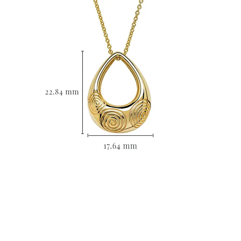 This Triskele necklace is in yellow gold vermeil coated sterling silver. It looks exactly like real gold jewellery but has a much lower price tag. Moreover, the 14ct vermeil gold coating is dense, durable and tarnish-resistant. To sum up, you can wear it as much and as often as you like without loss of sheen.