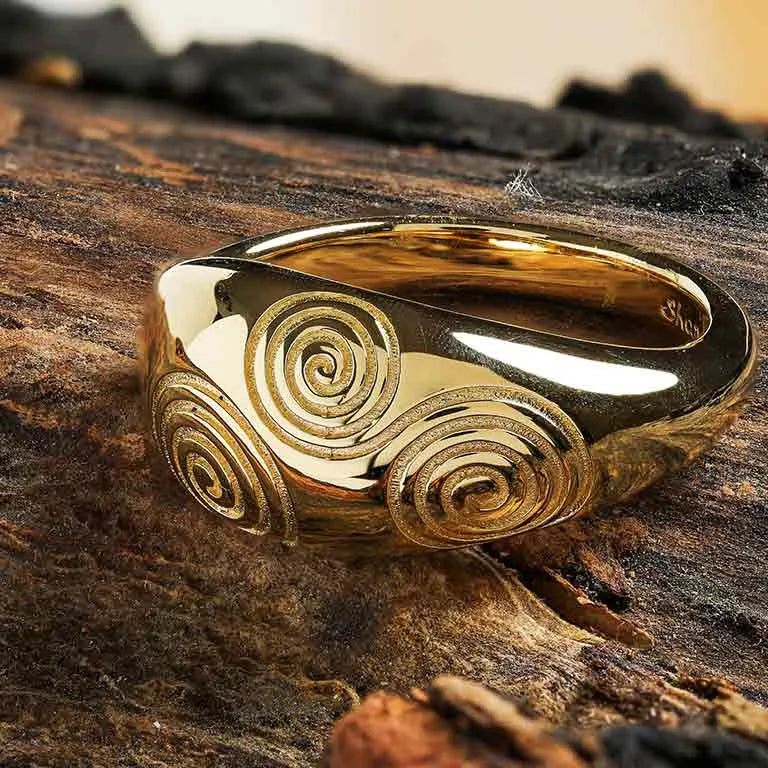 This Triskele ring is in yellow gold vermeil coated sterling silver. It looks exactly like real gold jewellery but has a much lower price tag. Moreover, the 14ct vermeil gold coating is dense, durable and tarnish-resistant. To sum up, you can wear it as much and as often as you like without loss of sheen.