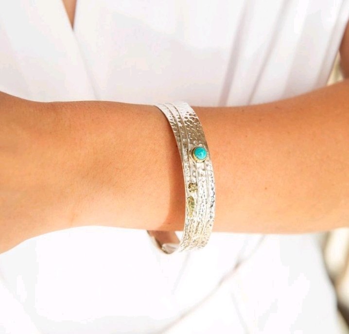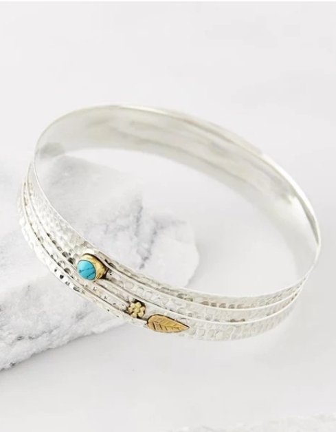 Beautifully embellished with vines, leaves, flowers, and vibrant turquoise, the December birthstone, our Turquoise Secret Garden bangle is a delightful piece of handmade jewellery inspired by enchanted forests and the true beauty of nature. Handmade.