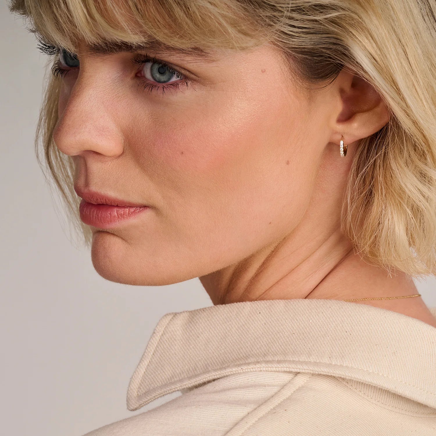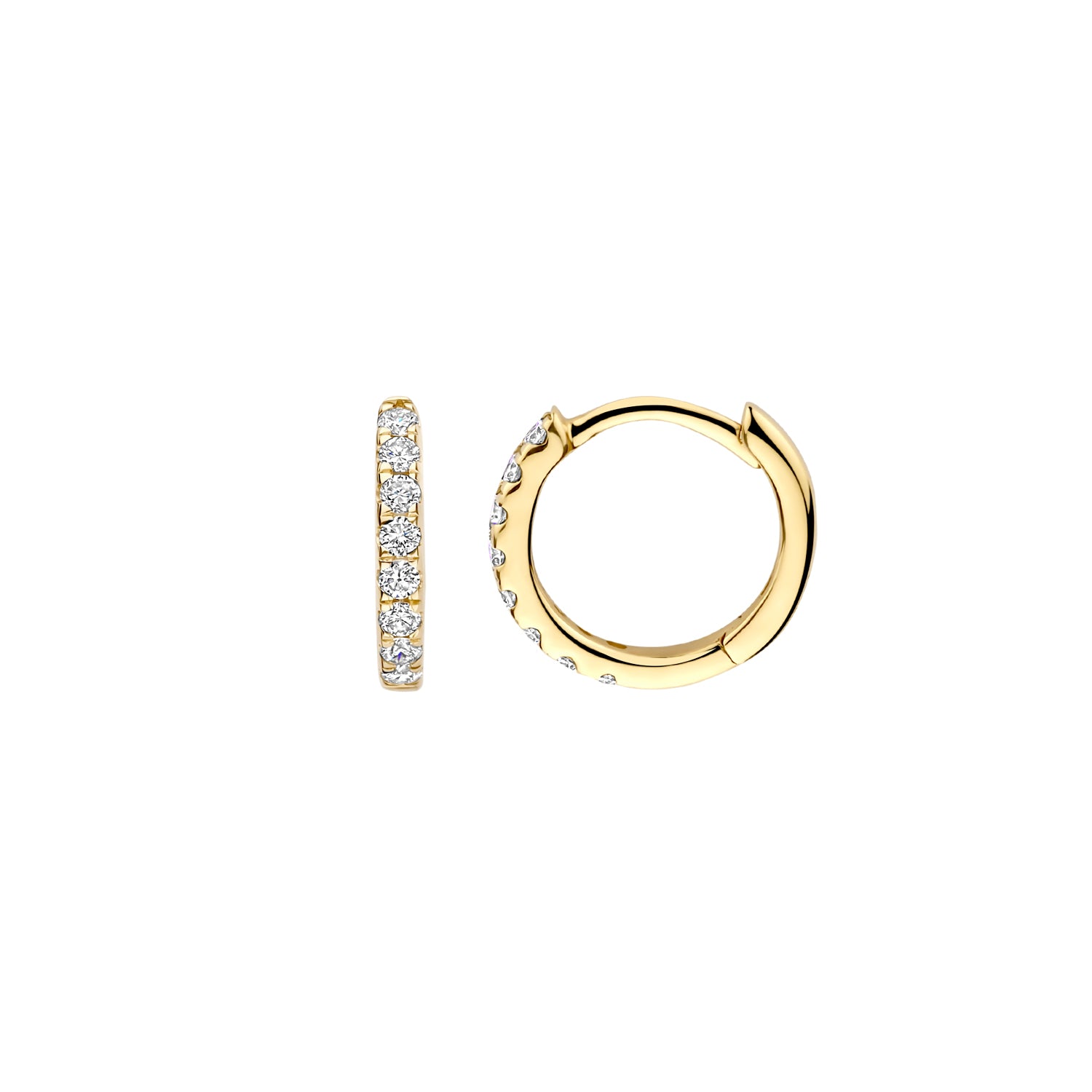 Subtle 14ct yellow gold hoop earrings set with sparkling lab-grown diamonds. The earrings are perfect on their own, but also combine beautifully with other lab-diamond jewellery from the Blush collection.
