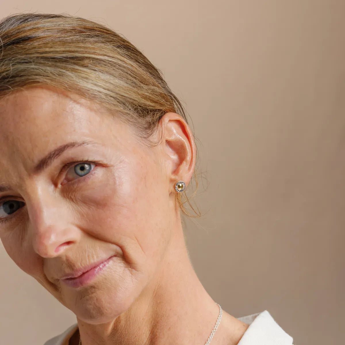 Let your golden heart shine. Two-tone ear studs with a thoughtful meaning. The silver is inscribed with Croí álainn: Beautiful heart. The gold centre radiates beauty and grace. The mix of metals compliment both silver and gold making these your everyday heroes.