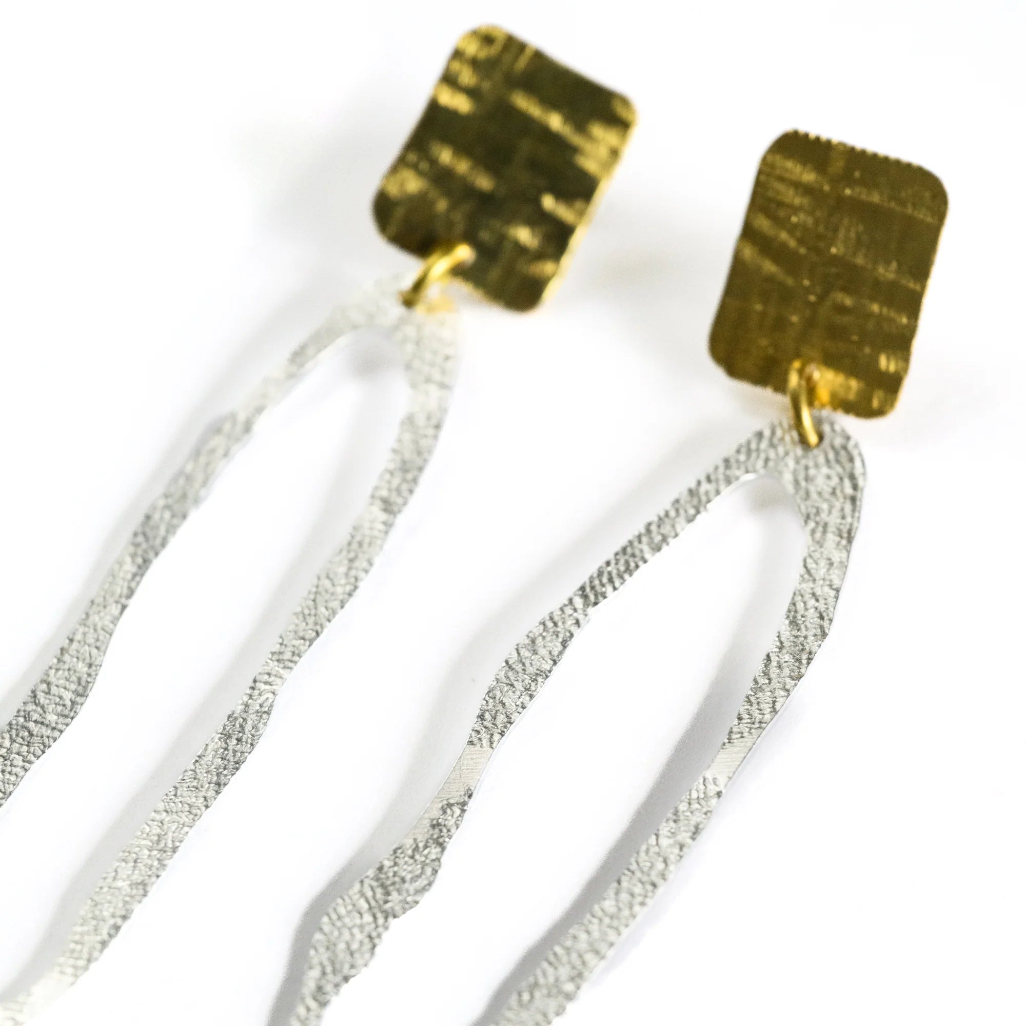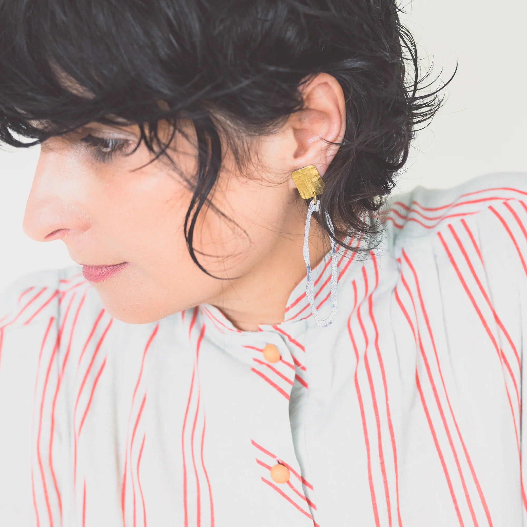 Delicate yet distinctive, earrings feature a beautiful mix of textured brass and aluminium with clean, delicate lines. Their lightweight design and subtle movement bring an effortless elegance to any look. These earrings add a little bit of chic to every outfit.