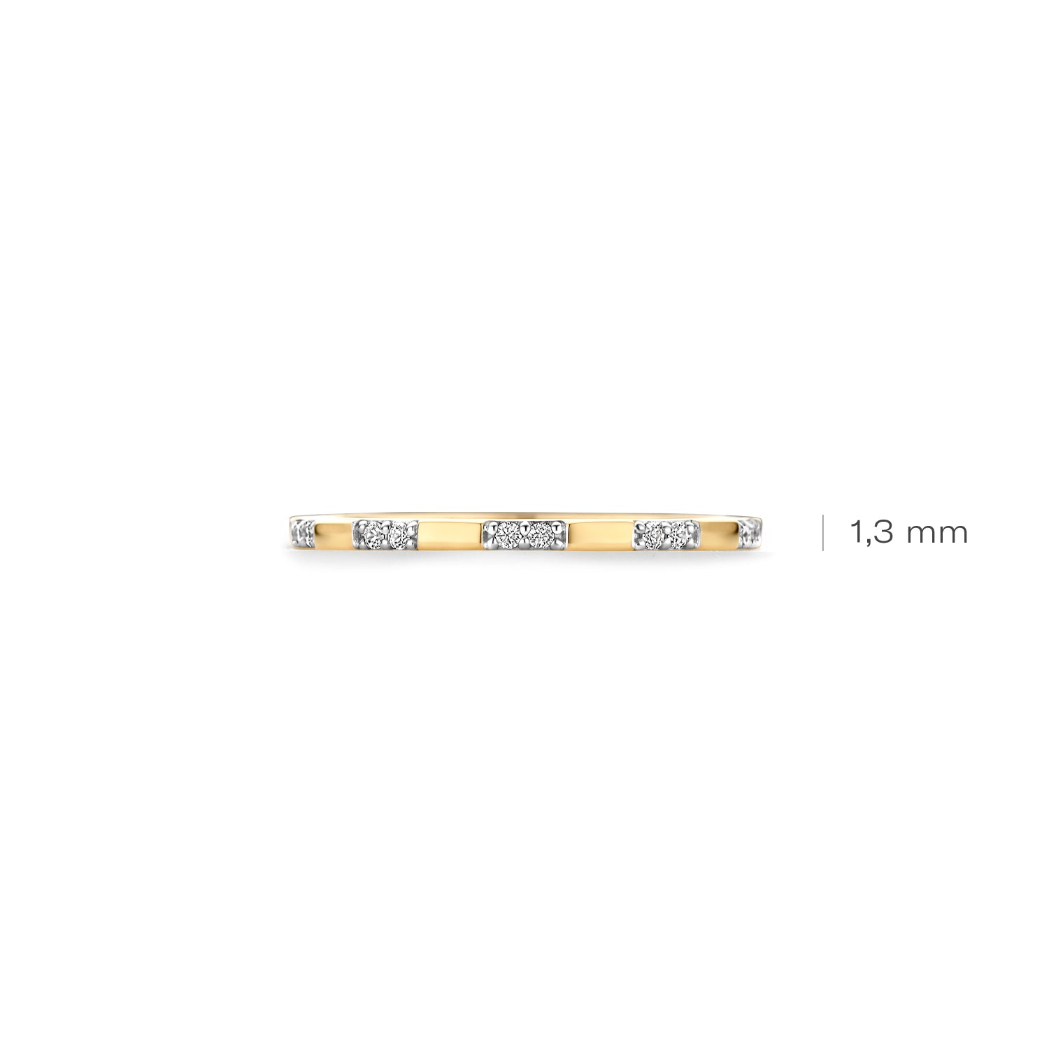 This elegant 14ct yellow gold ring has alternating smooth sections and is set with zirconia in pavé setting. Wear on its own or mix and match it with other rings from Blush.