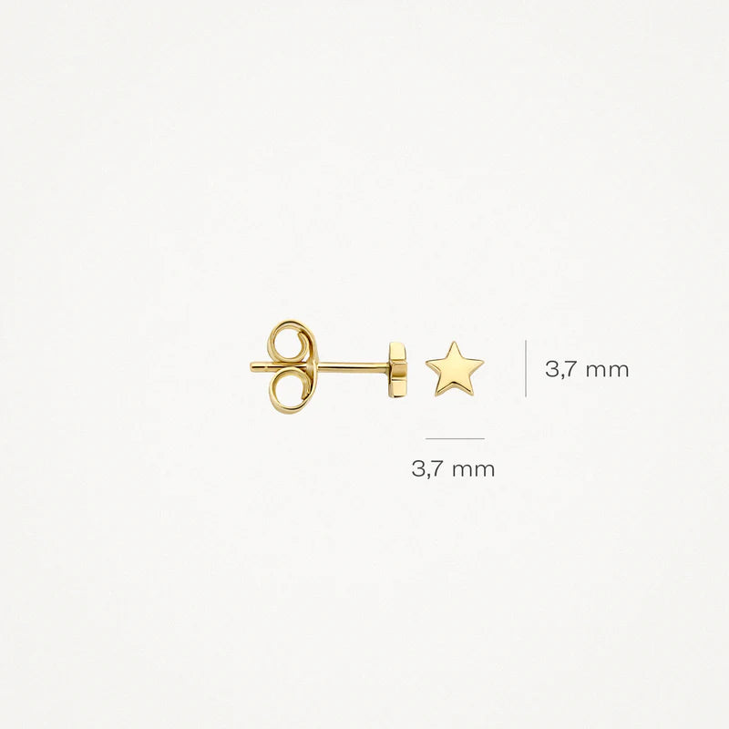 These solid star-shaped earrings made of 14ct yellow gold. The sparkling design works well on its own but also in combination with other earrings from our collection.