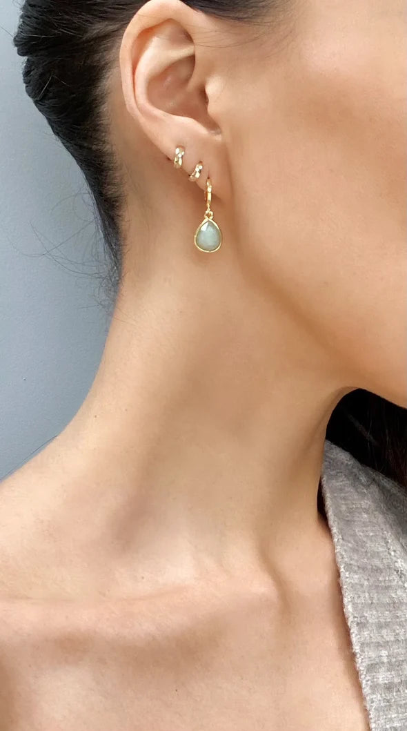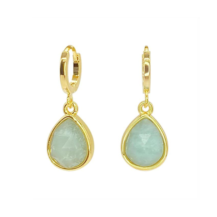 Amazonite Drops earrings are handmade with natural semi faceted amazonite stones and 14ct gold plated brass hoops.