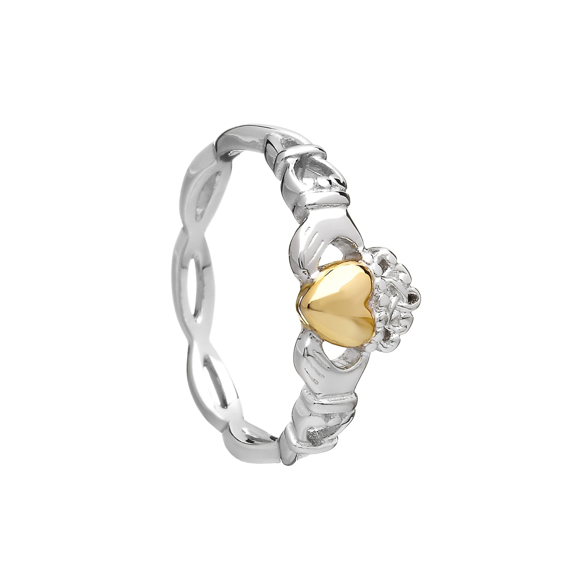 This Claddagh Ring with Gold Heart is a traditional Claddagh Ring with the addition of Celtic Knot-work along the band. The Claddagh Heart is solid 10ct gold with a sterling silver band. The Claddagh ring is a symbol for love, the hand’s friendship and the crown loyalty.