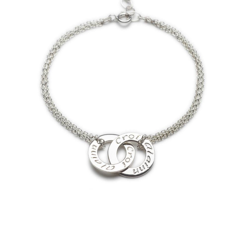 Two infinite circles connected. Both inscribed with the Irish words Croí álainn. Beautiful heart. Reminding us that we are all connected and to hold on to your beautiful heart. This wonderful sentiment is engraved on both sides of the circles, so no need to worry which way round you wear it!