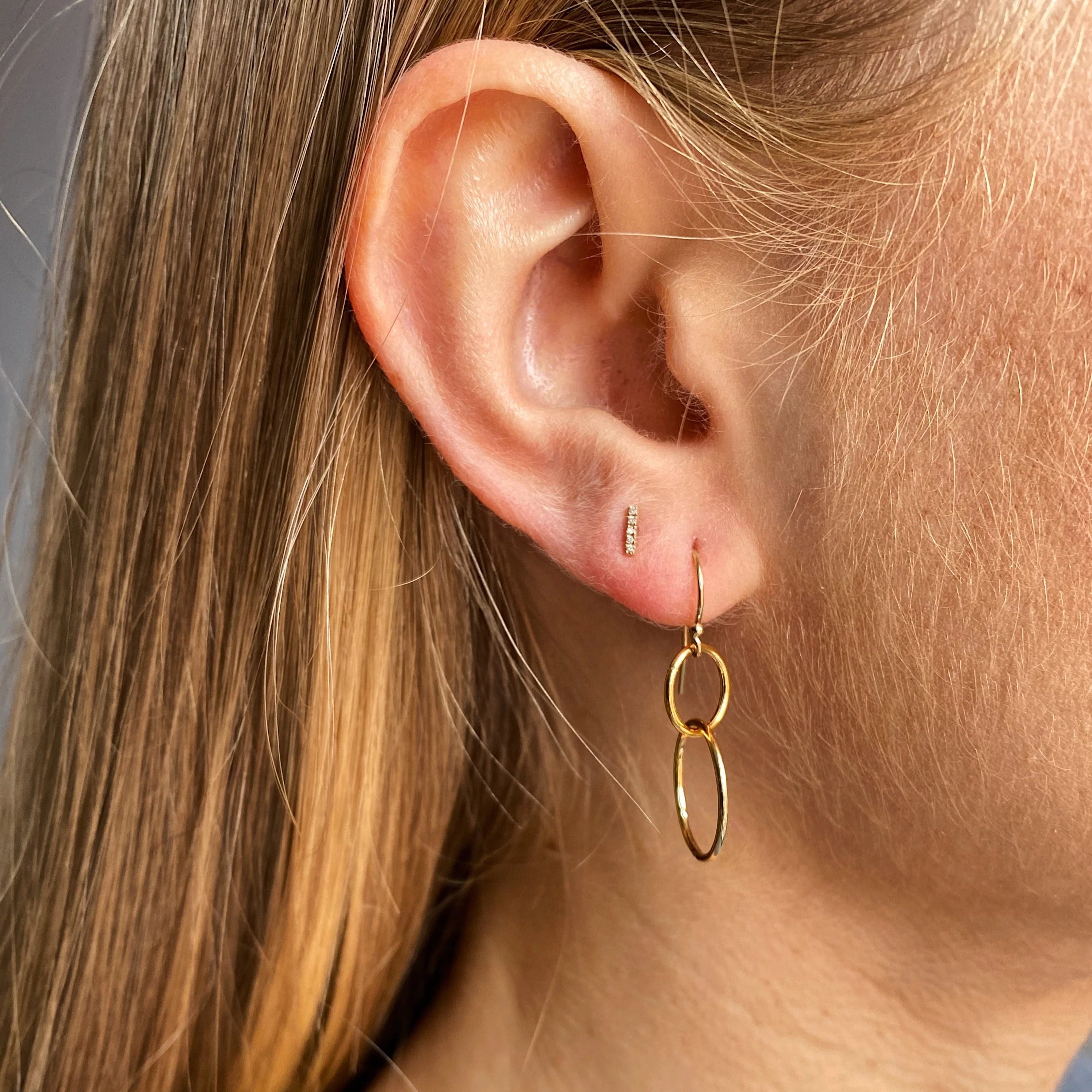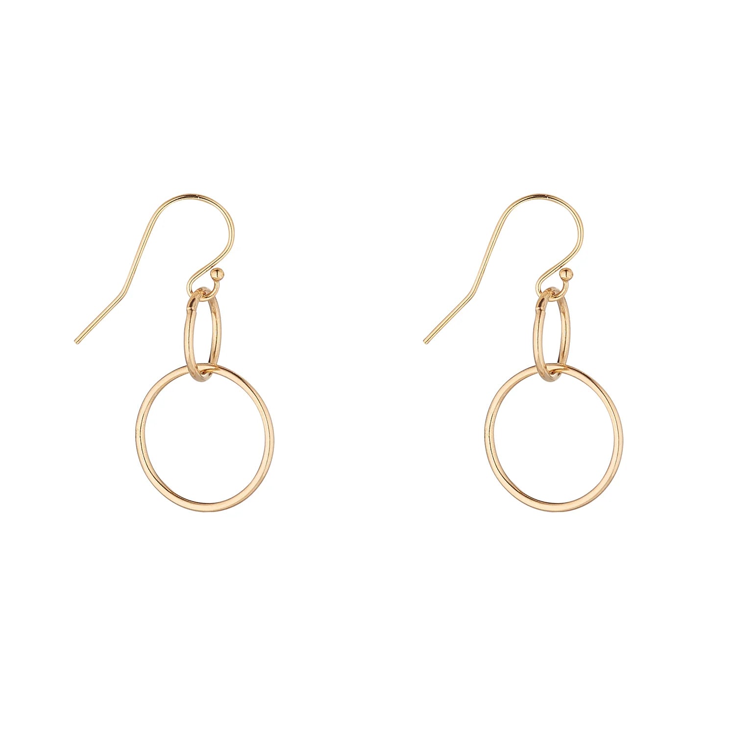 A much loved MoMuse style, these gold filled earrings feature two interlocking circles. Wear it with its matching necklace and bracelet for a complete look.