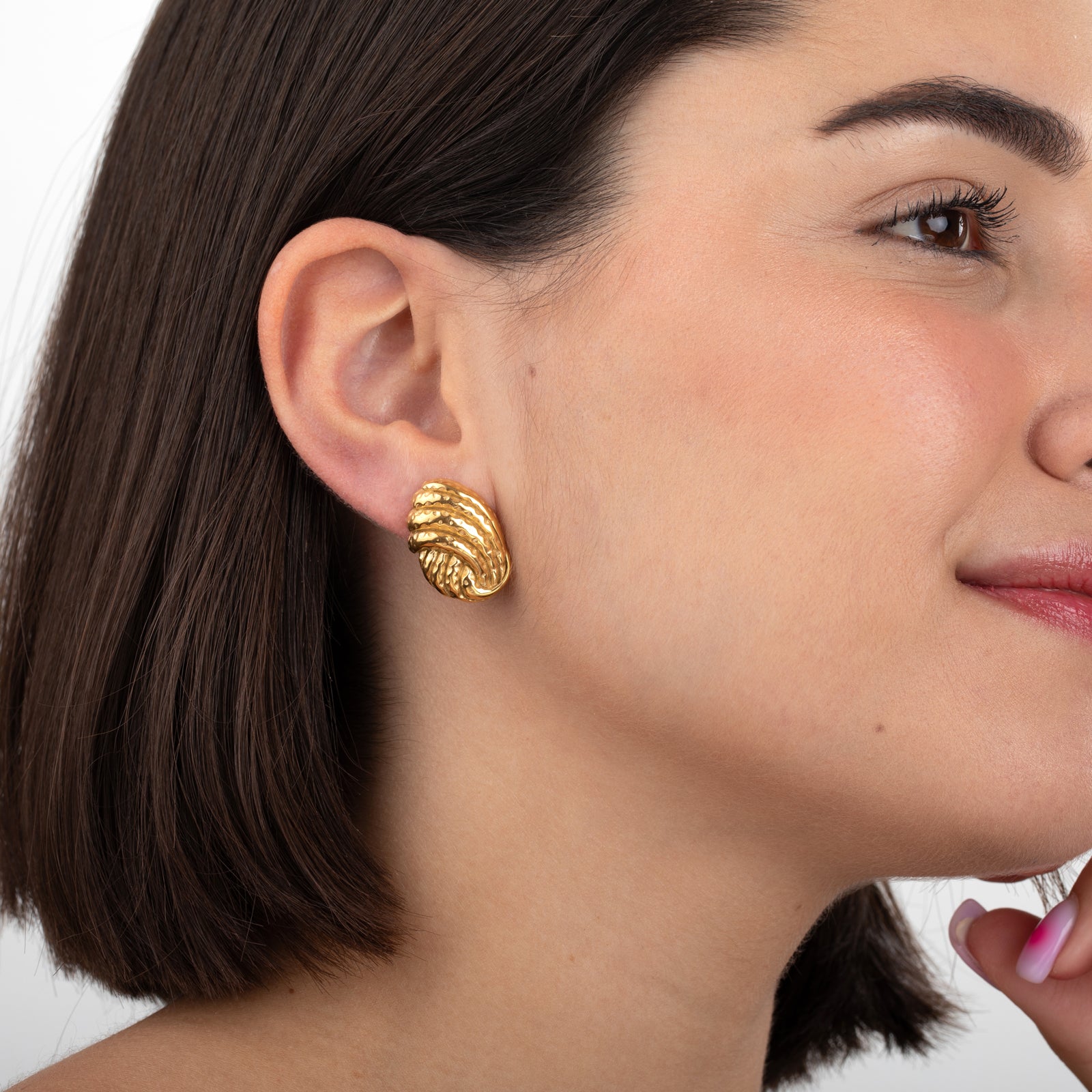 With a nod to glamorous 80s style, these chic statement stud earrings have a retro feel, with a modern finish.