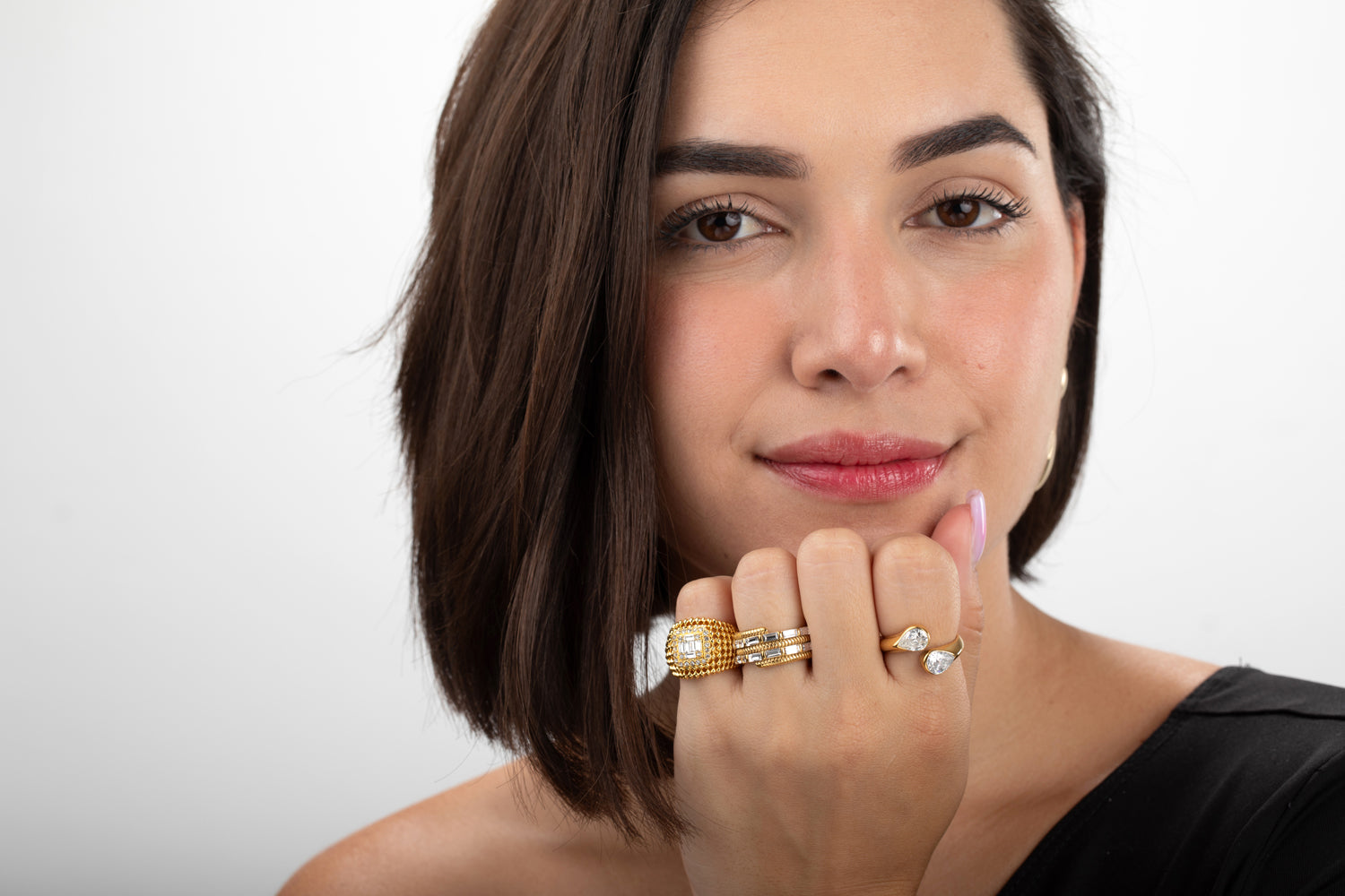 Our Sylvie ring brings effortless glamour to any look, it comes in a range of sizes but is also slightly adjustable so it can be worn on different fingers.