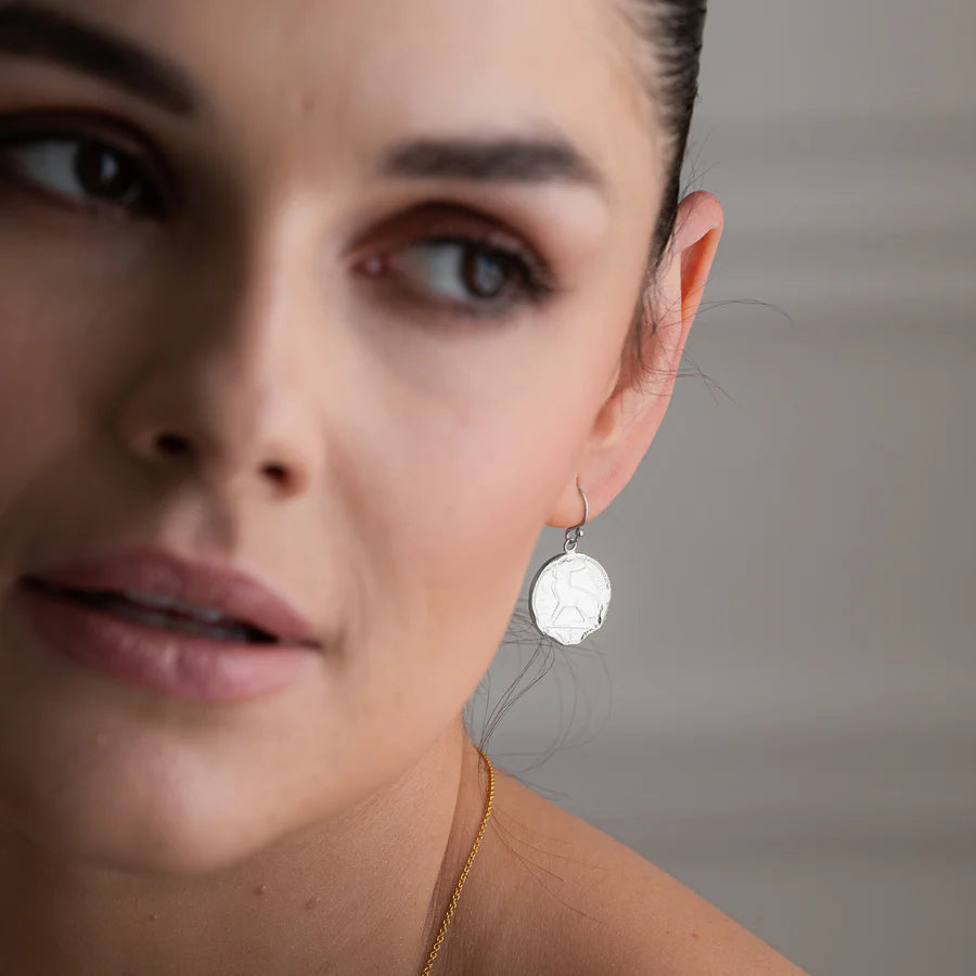 These 3 Pence Coin Earrings are a stunning and unique accessory that are sure to turn heads. The earrings feature real casting of a 3 pence coins from the Pre-Decimal Irish coin collection, which have been plated in high-quality gold vermeil, a thick layer of 18ct gold over sterling silver. This provides both durability and a beautiful shine that will catch the light with every movement.