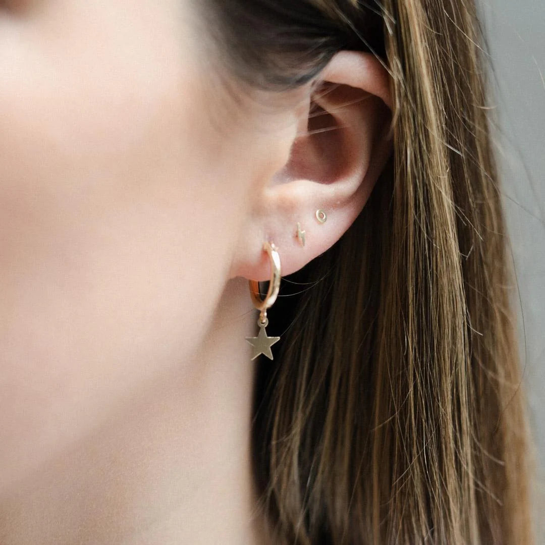 14ct gold-filled clip hoop earrings with a gold star charm for a night-sky themed look.