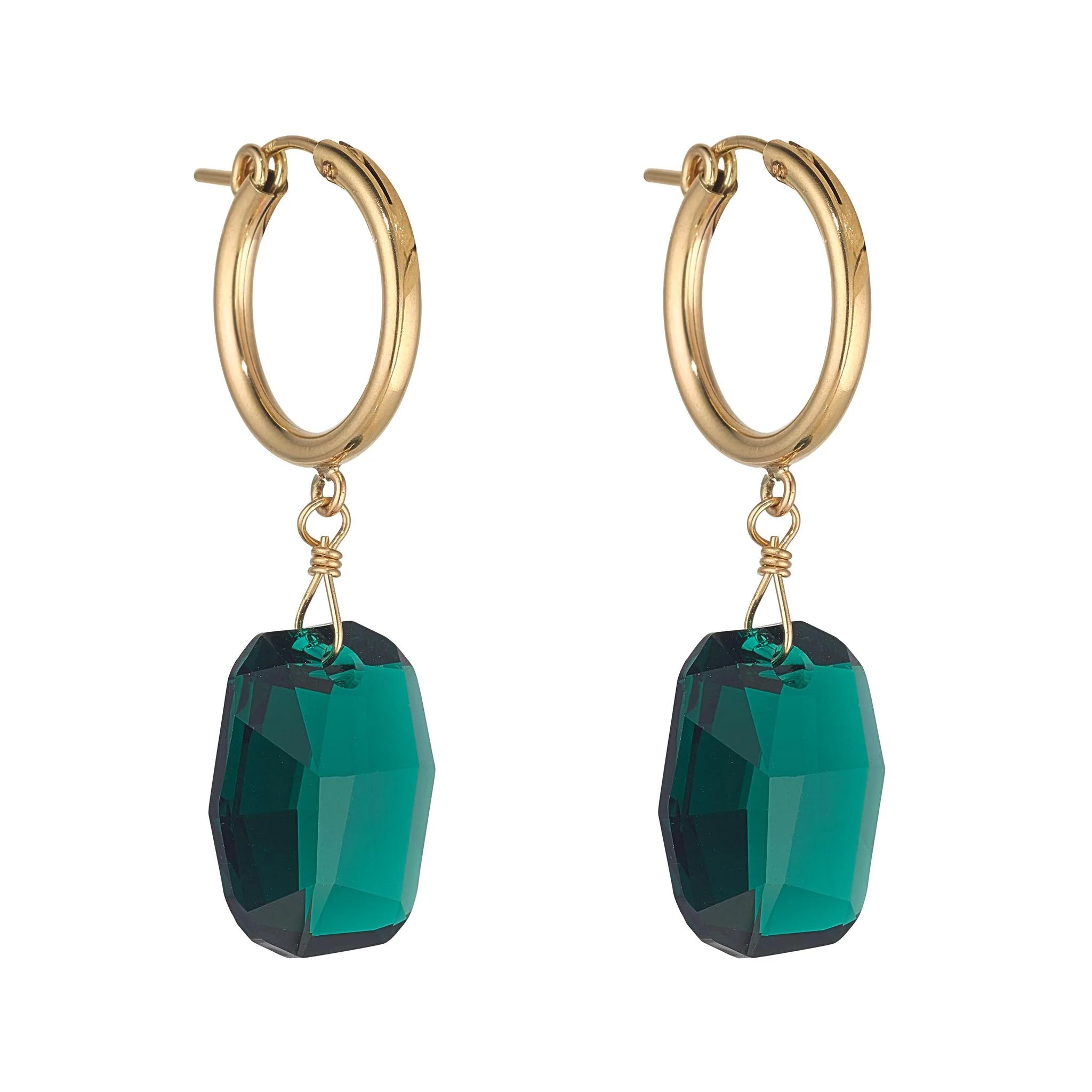 Gold Filled Graphic Emerald Green Crystal Large Clip Hoop Earrings