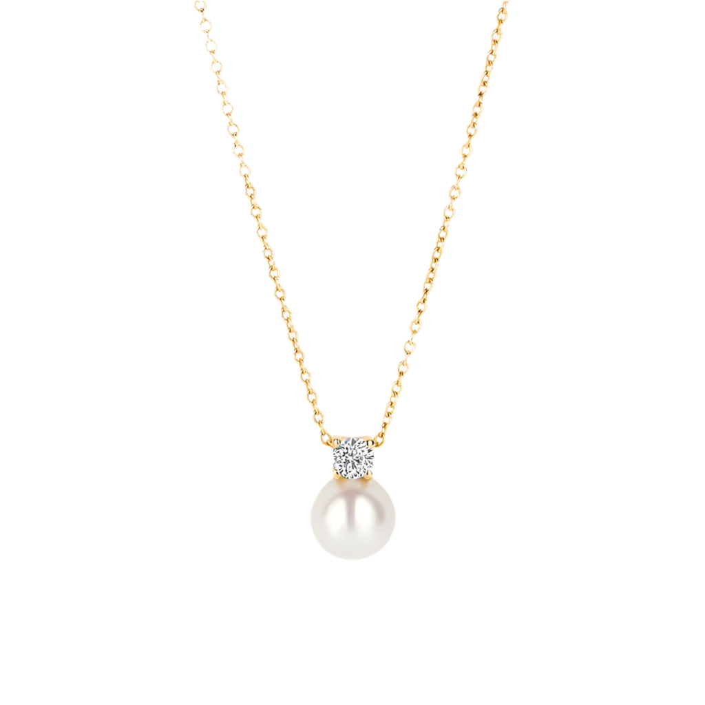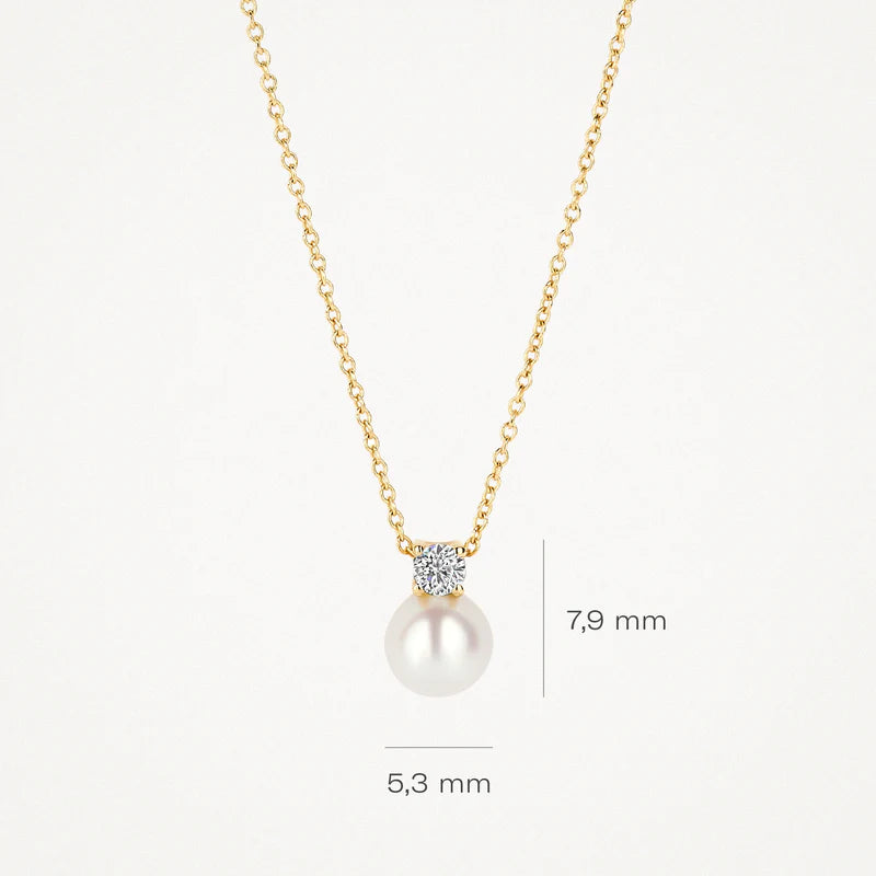 This 14ct yellow gold necklace is adorned with a pearl and zirconia in chaton setting.