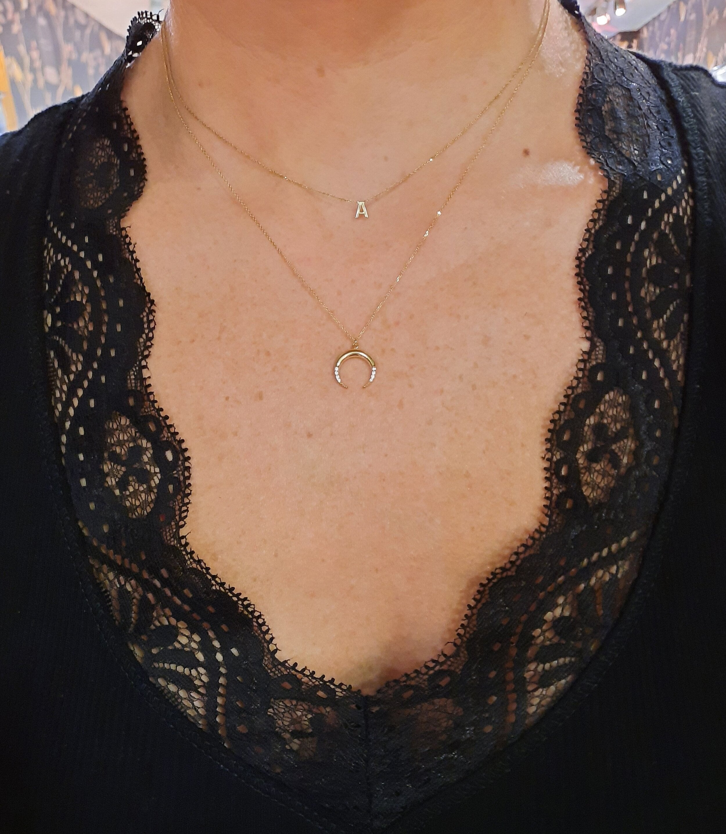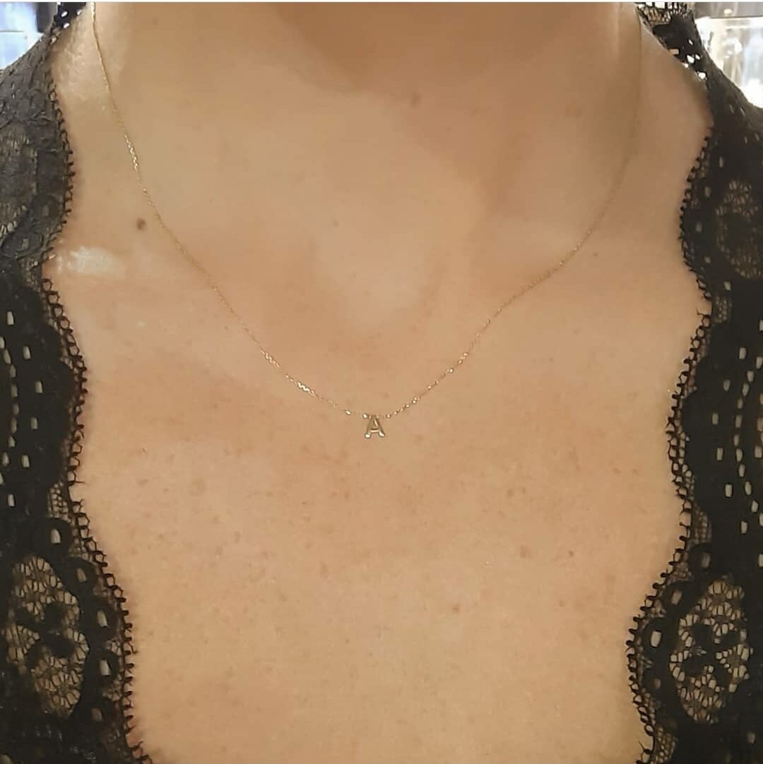 Delicate 9ct gold initial necklaces, on an adjustable 9ct gold chain.