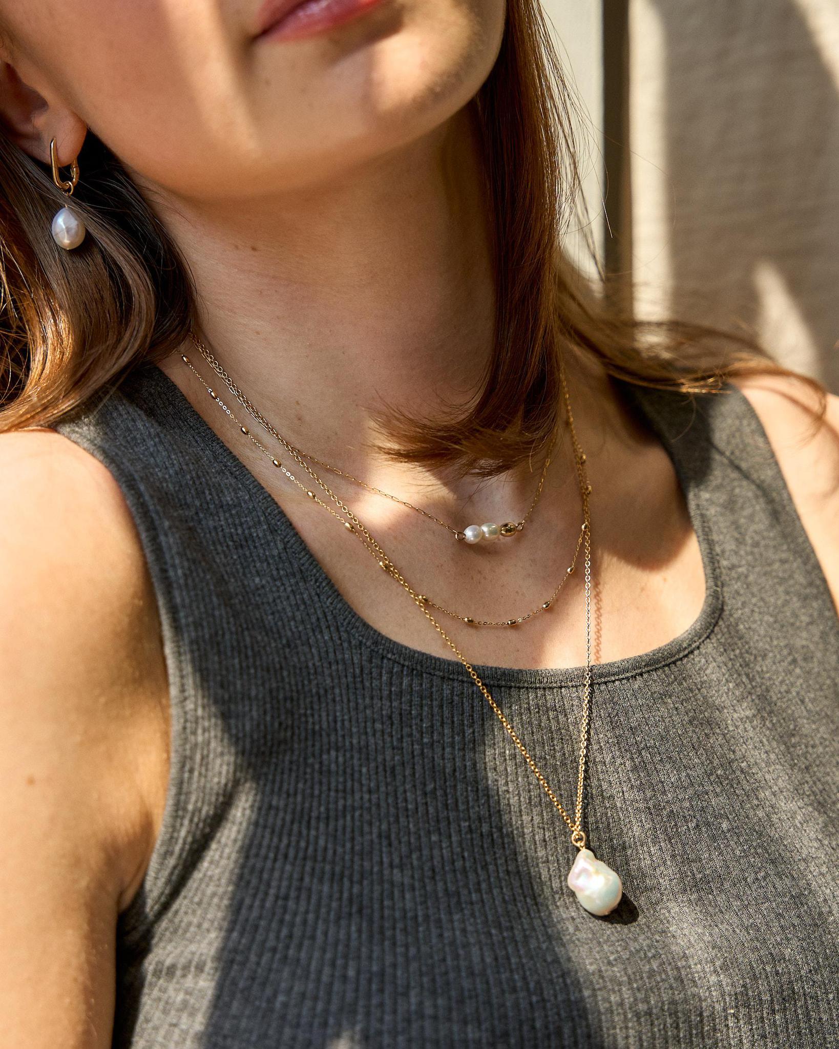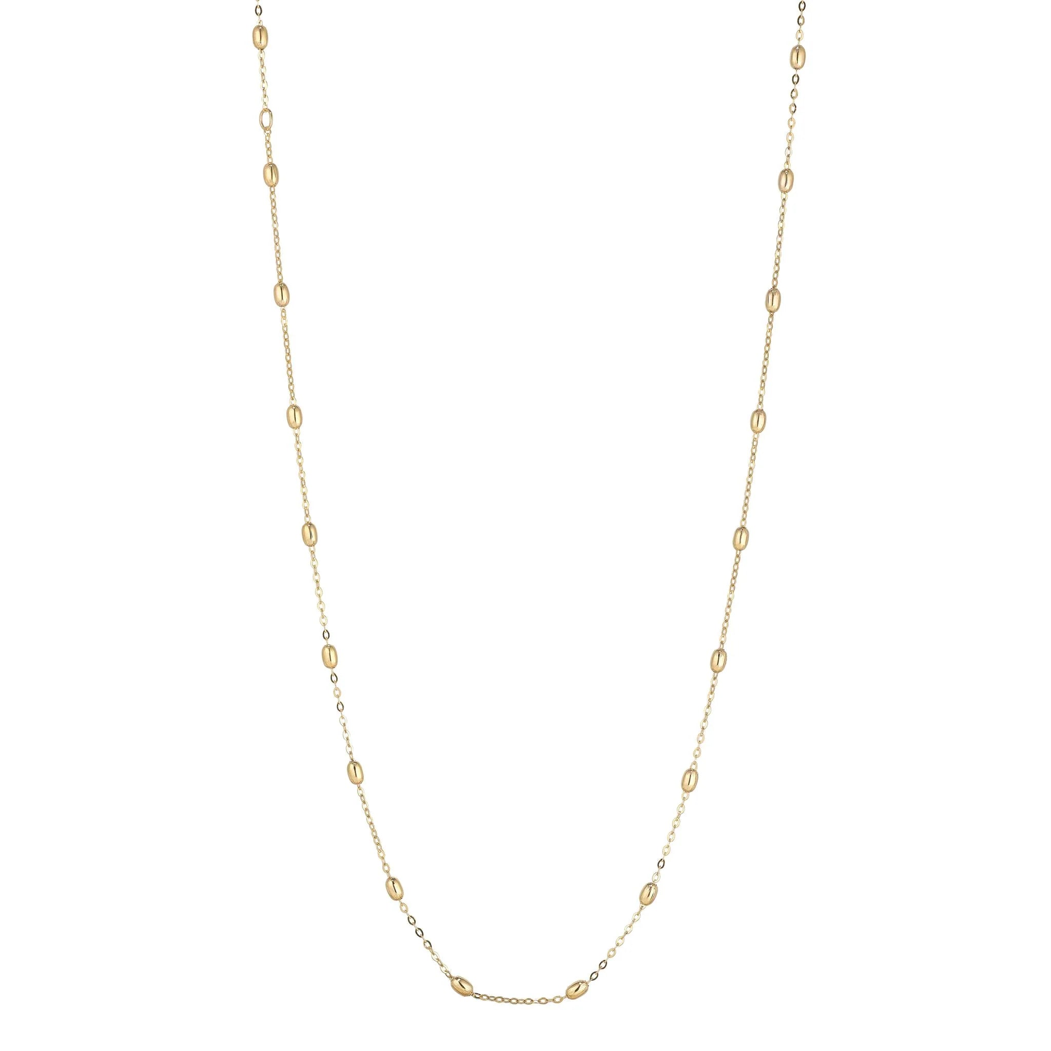 Simple and sleek, this 14ct gold-filled necklace features a string of petite beans along the 20-inch chain. Can also be worn at a length of 16 and 18-inches. Also available with a matching bracelet.