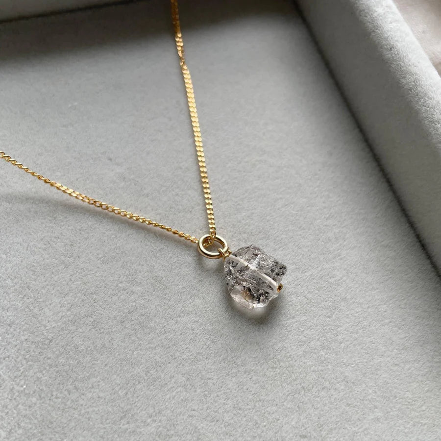 A stunning raw-cut Herkimer diamond necklace, unpolished and perfectly natural.