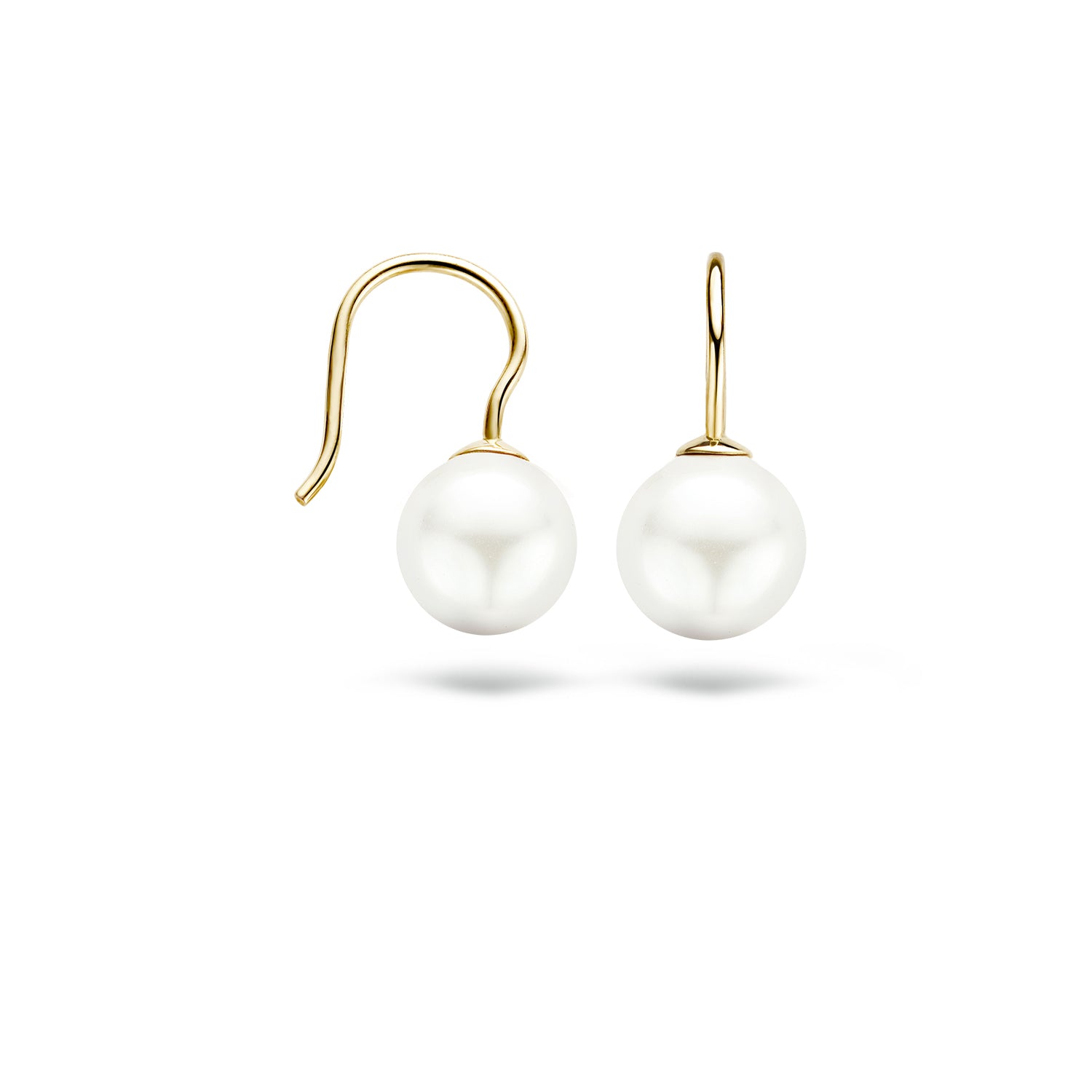 These classic and timeless earrings are made with Swarovski pearl and 14ct yellow gold.