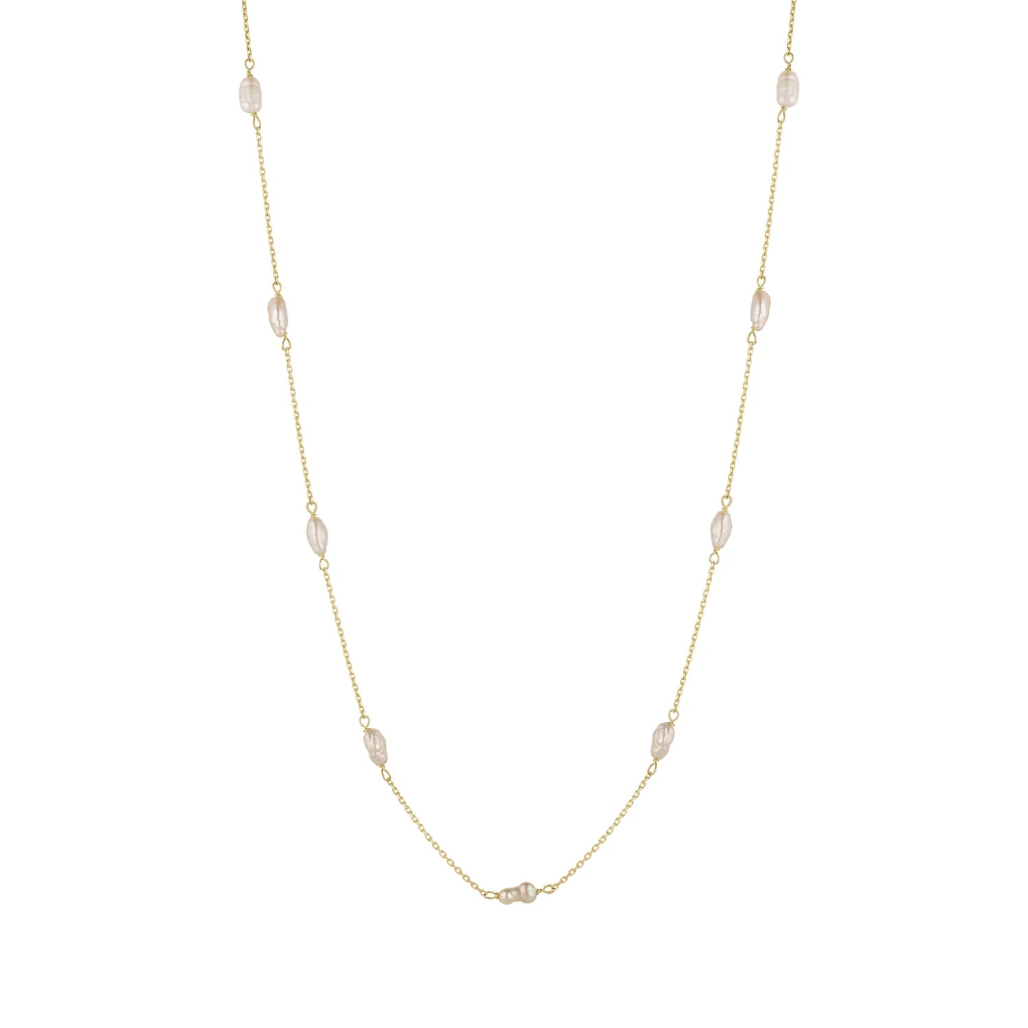 This chic necklace will complement any outfit. Made from 9ct yellow gold, the piece is embellished with petite pieces of fresh water pearl. An all-round adaptable style that will work equally well for day or night.