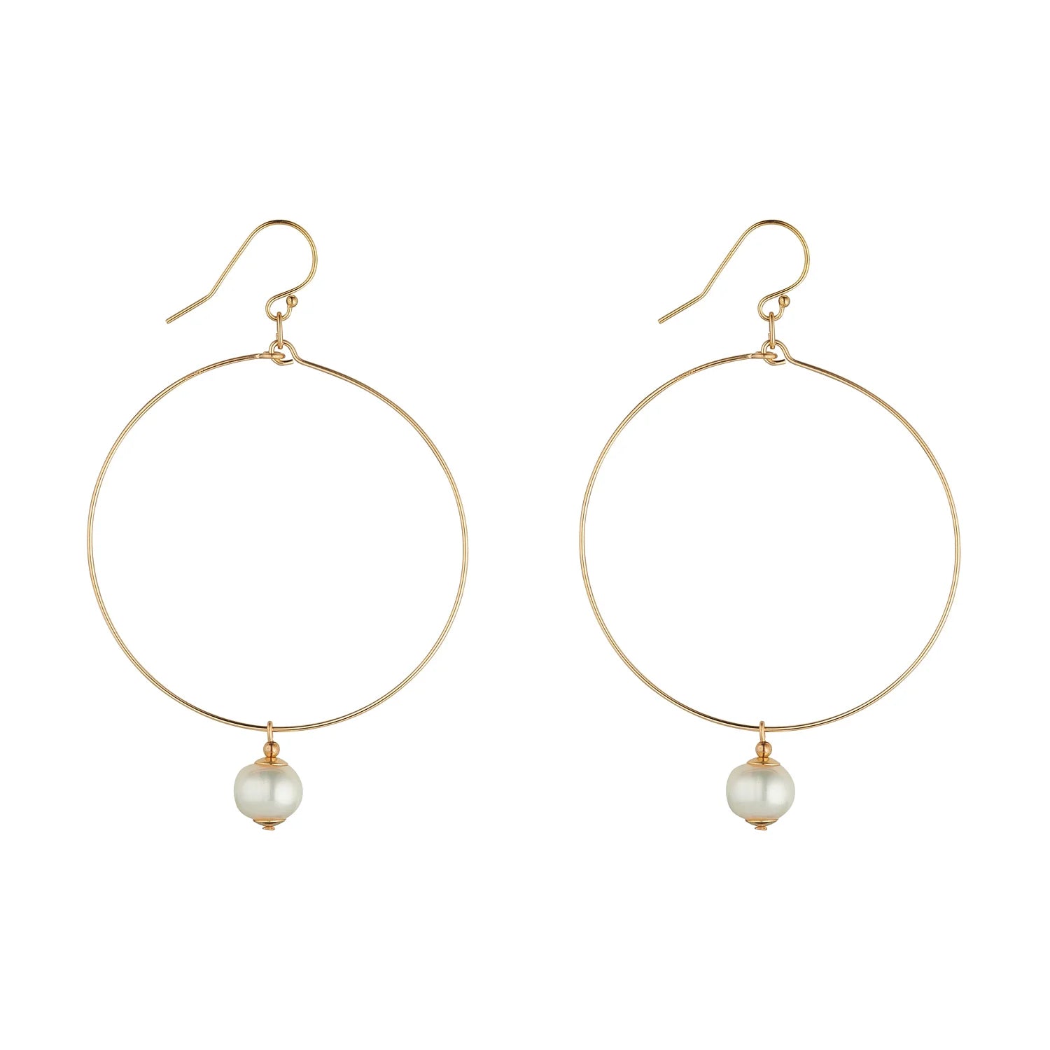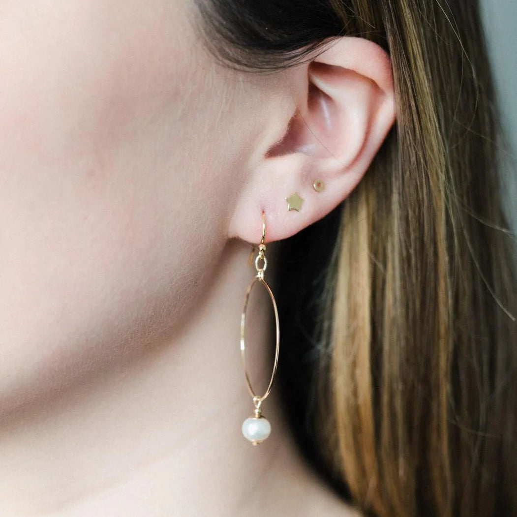 14ct gold filled small hoop earrings with petite freshwater pearl.