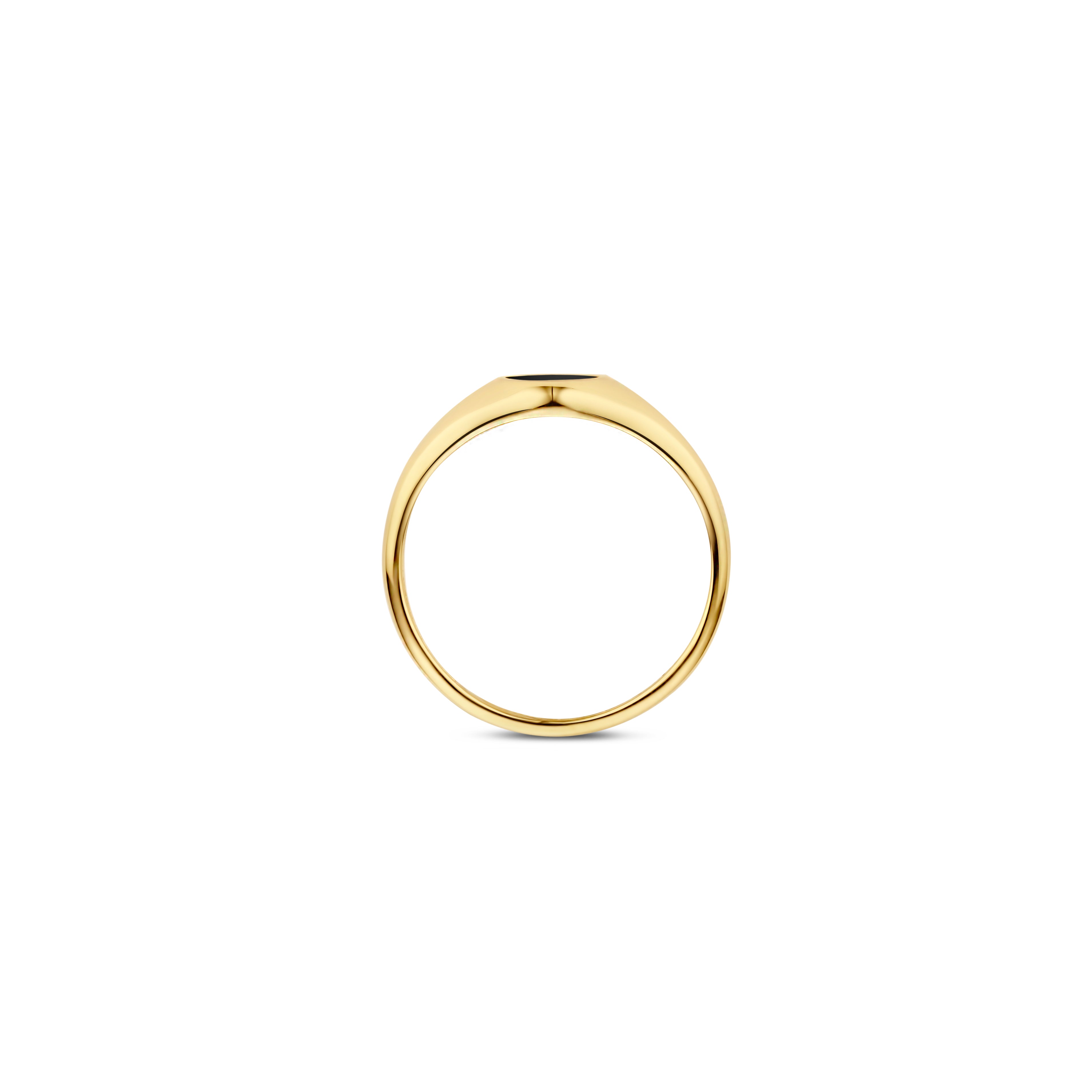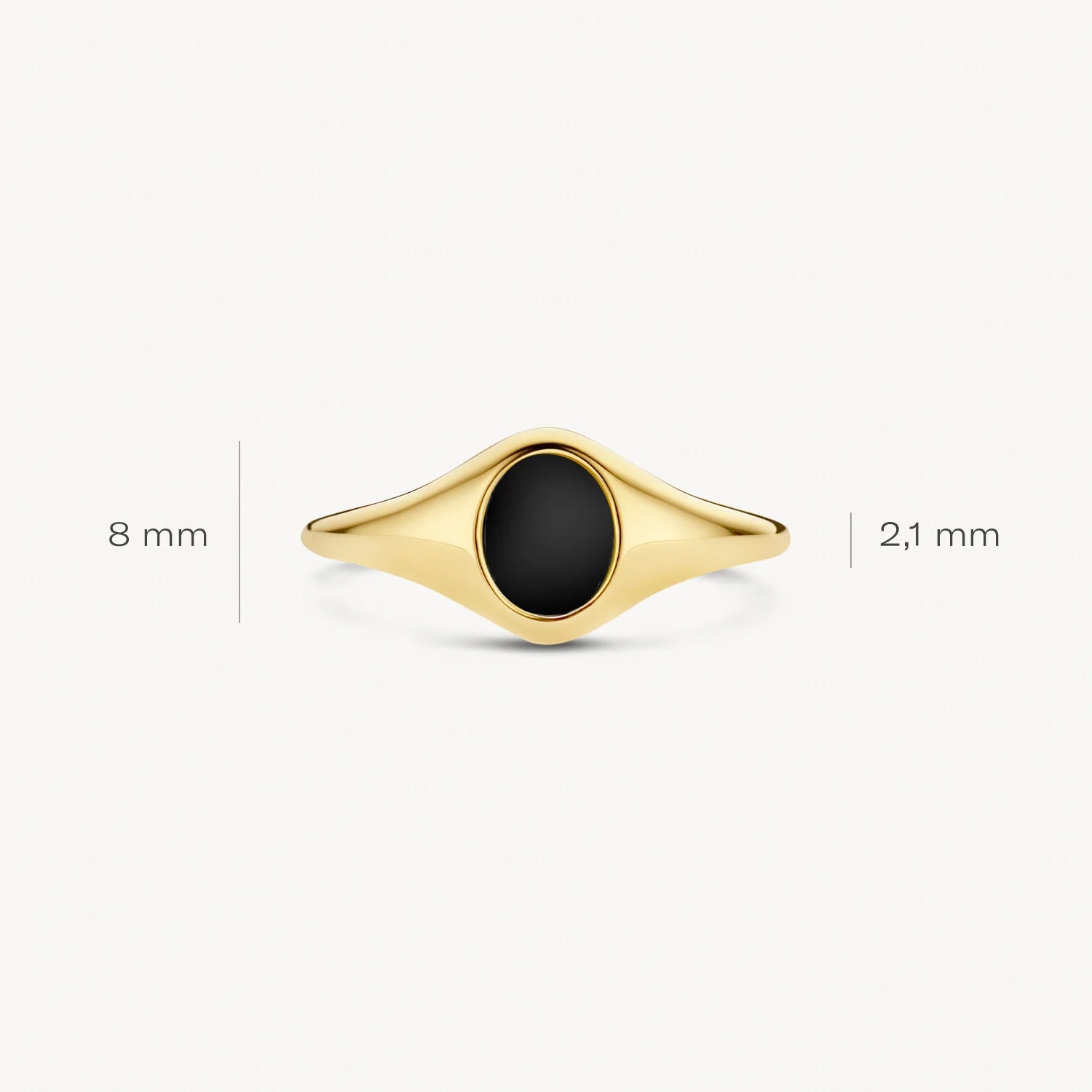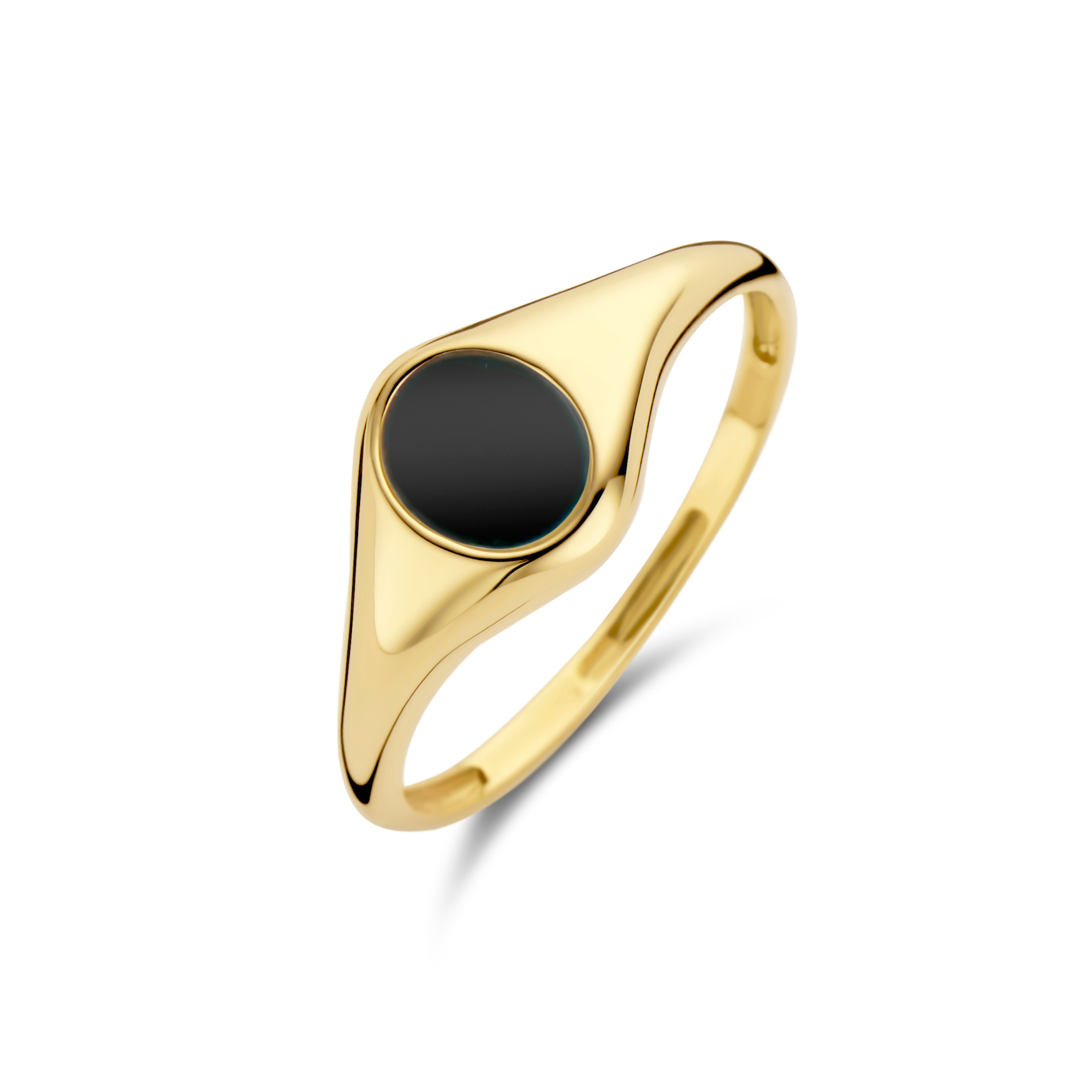 This timeless signet ring made of 14ct yellow gold with a black onyx stone has a simple, smooth design.