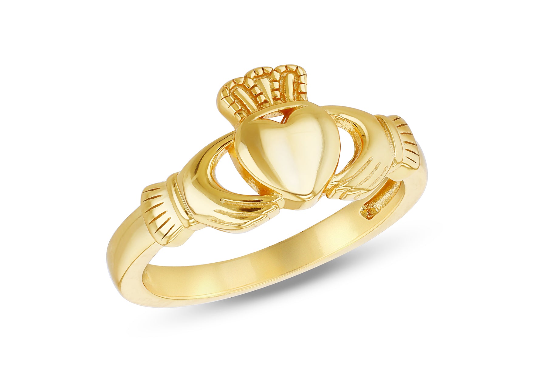 Classic Claddagh design ring, available in sterling silver and gold plated on sterling silver