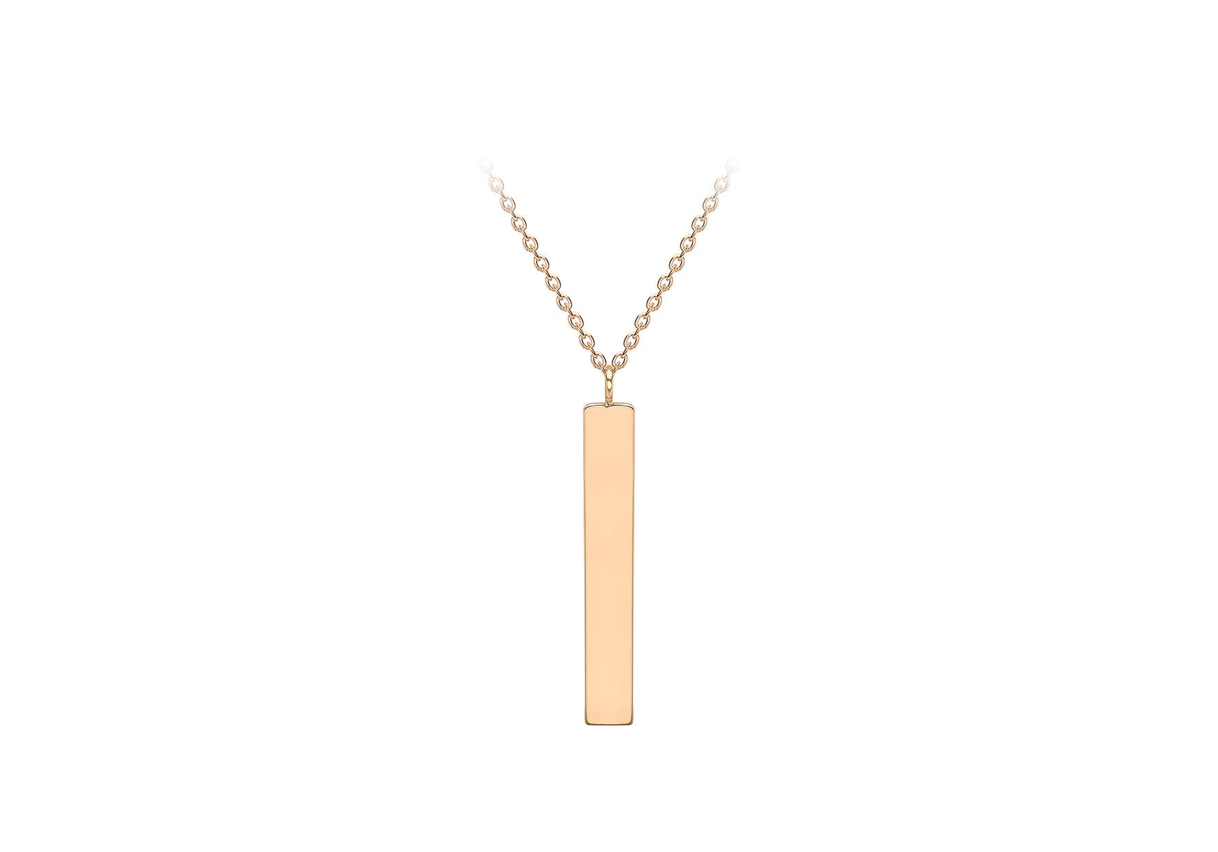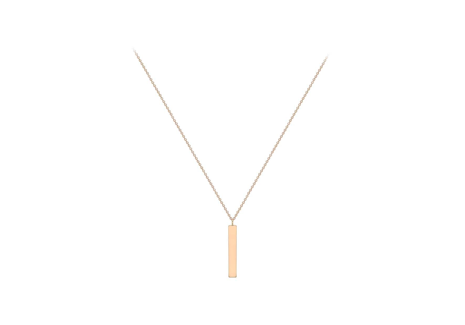 9ct rose gold vertical bar necklace, on an adjustable chain, making it perfect for layering with all of your favorites.