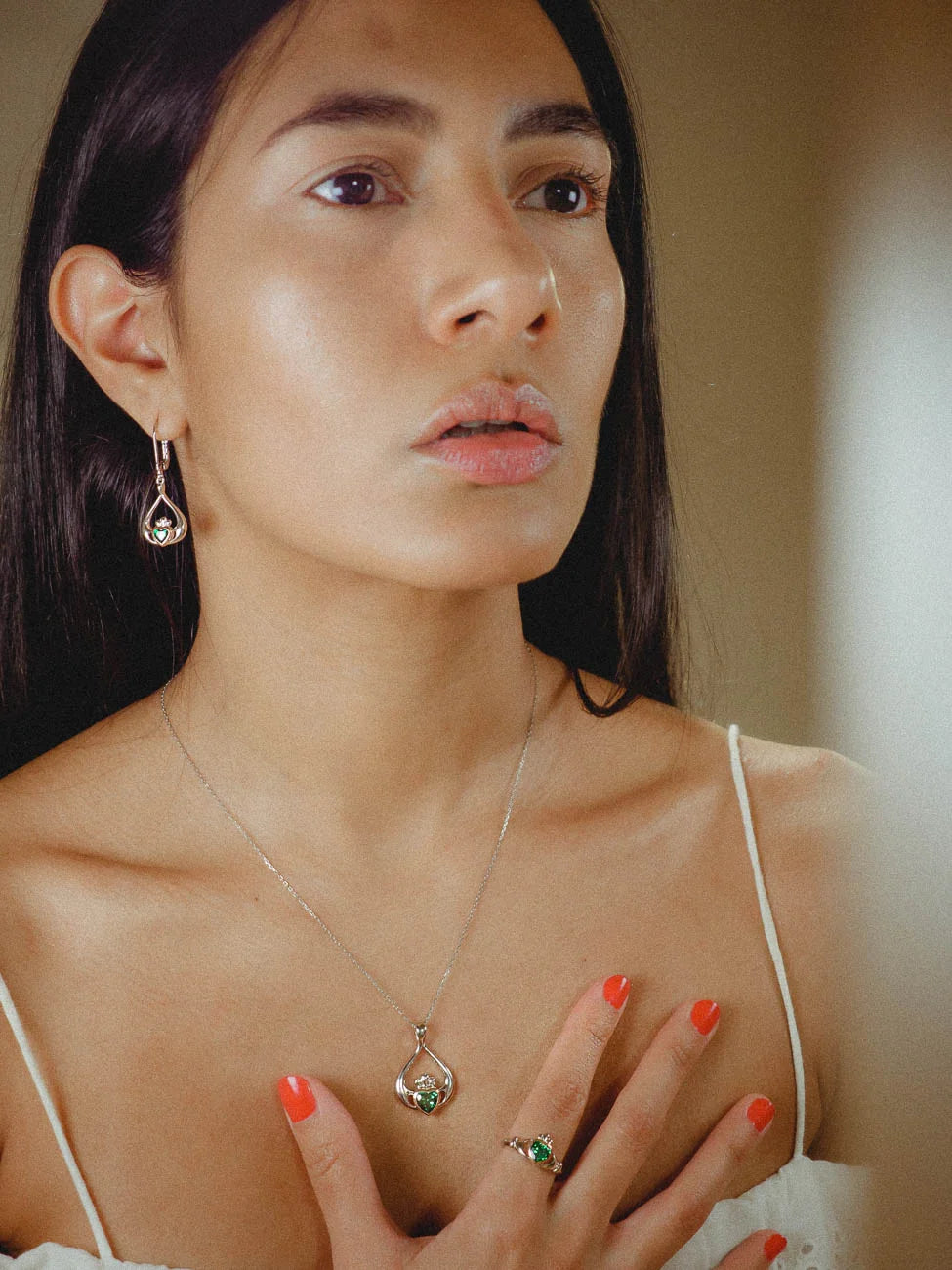 Claddagh Green Stone Teardrop Earrings
